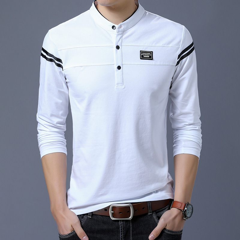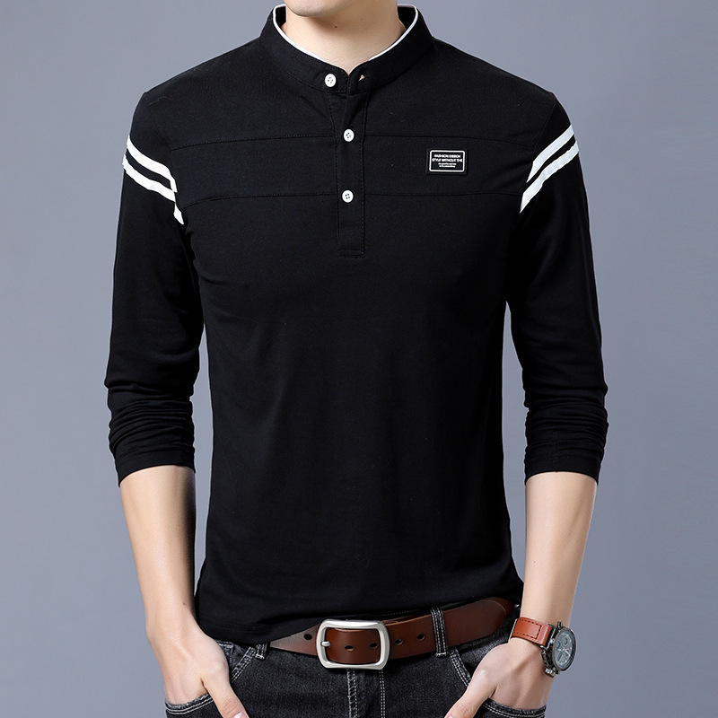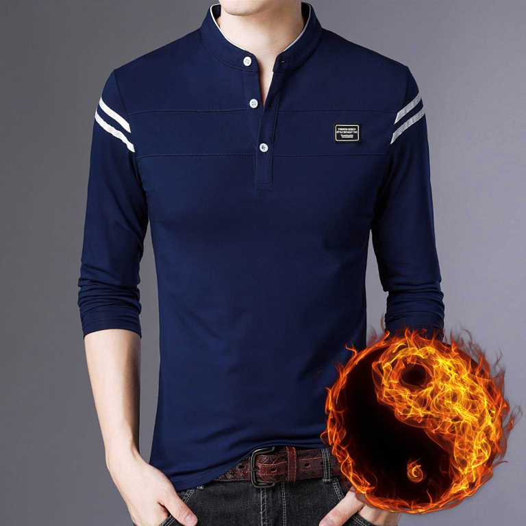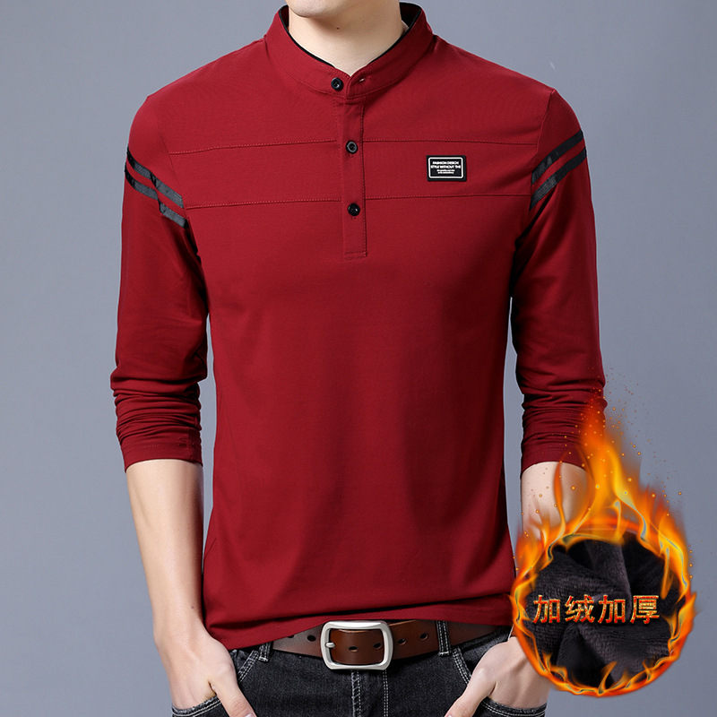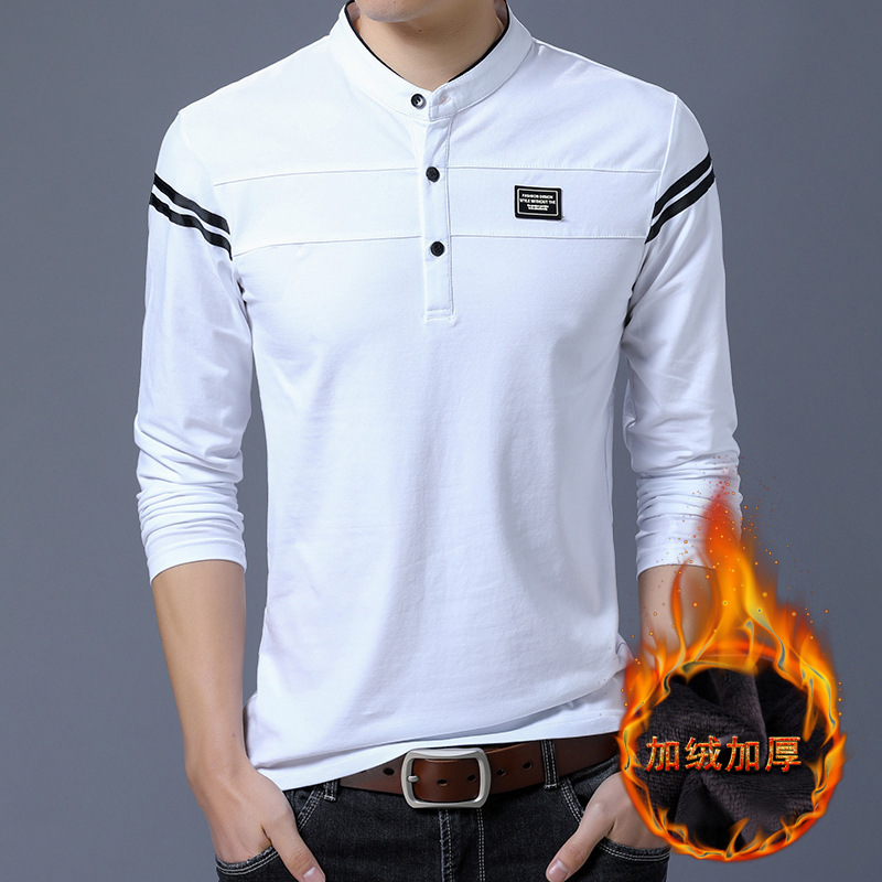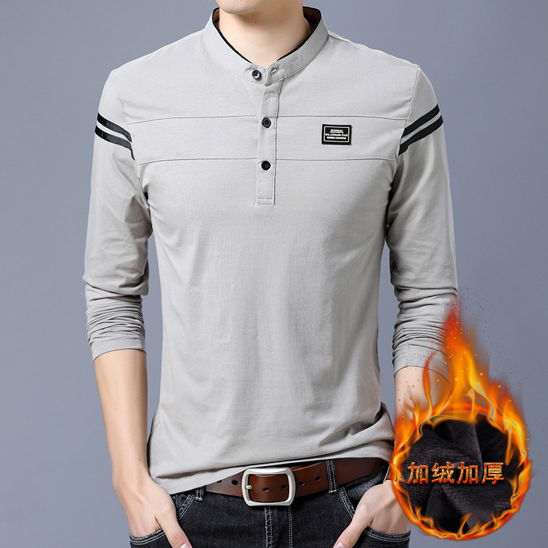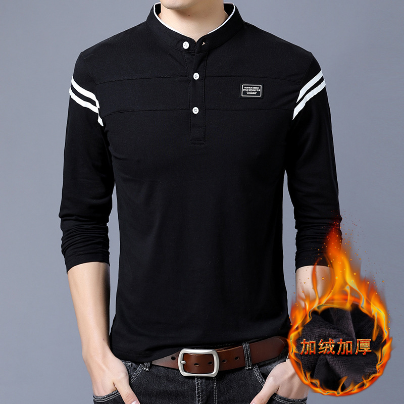 가을 스탠드 칼라 젊은 남성 긴팔 스웨터 코튼 티셔츠 남성 유행 벨벳 두꺼운 유행 따뜻한 바닥 셔츠스토어 가기