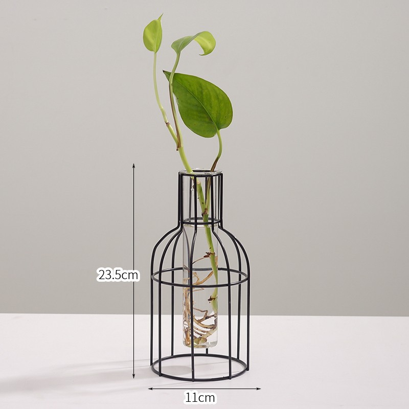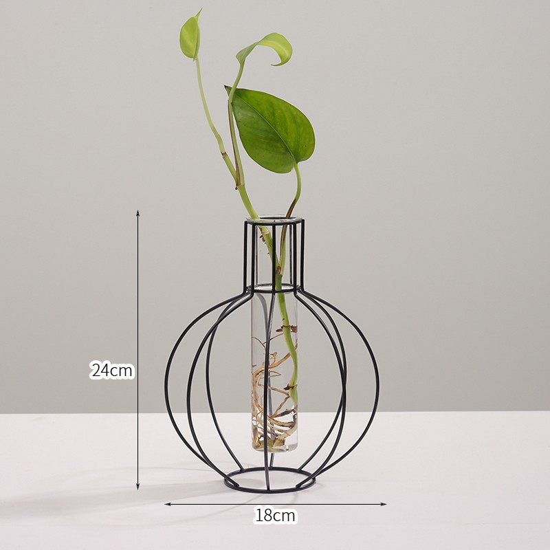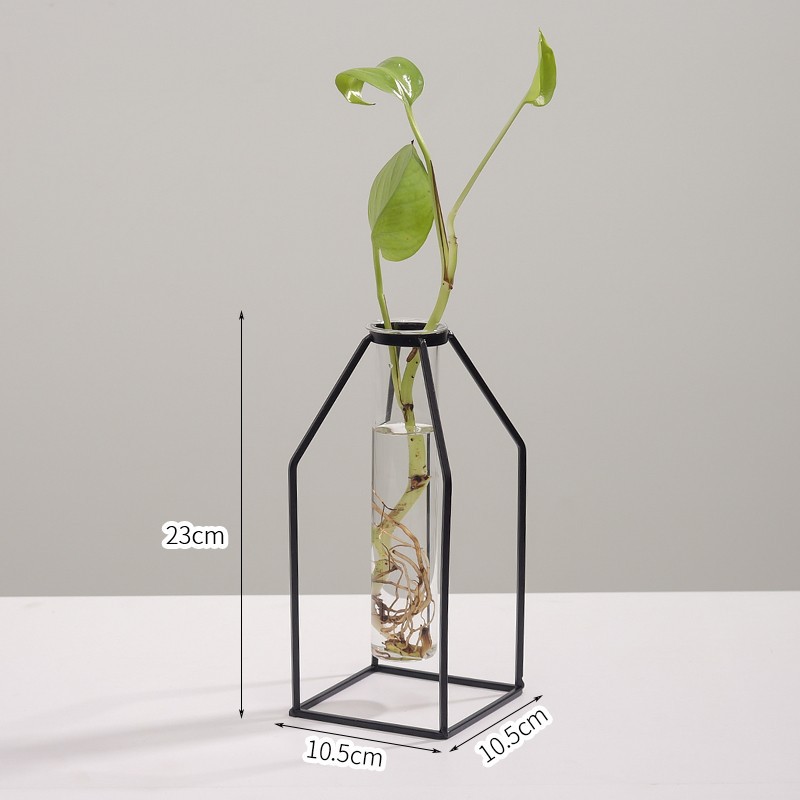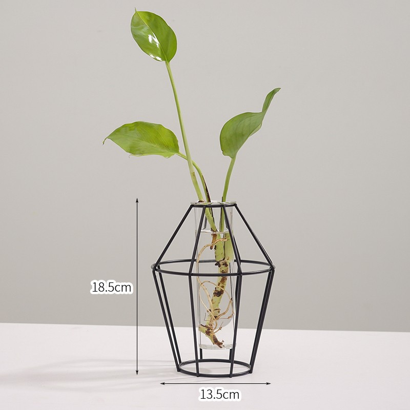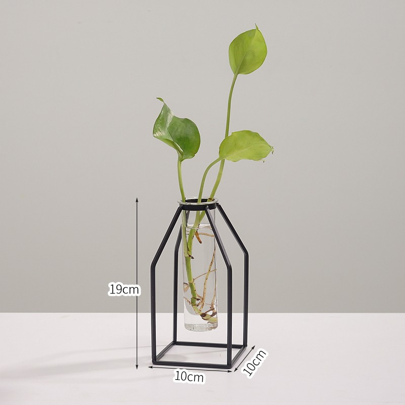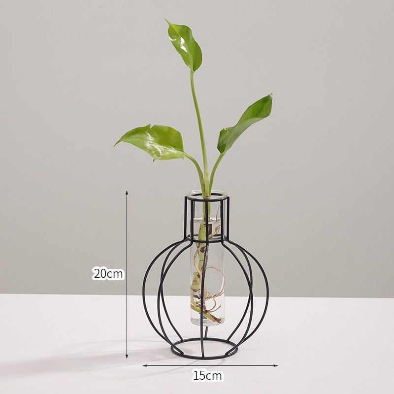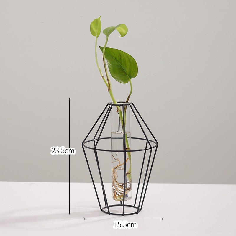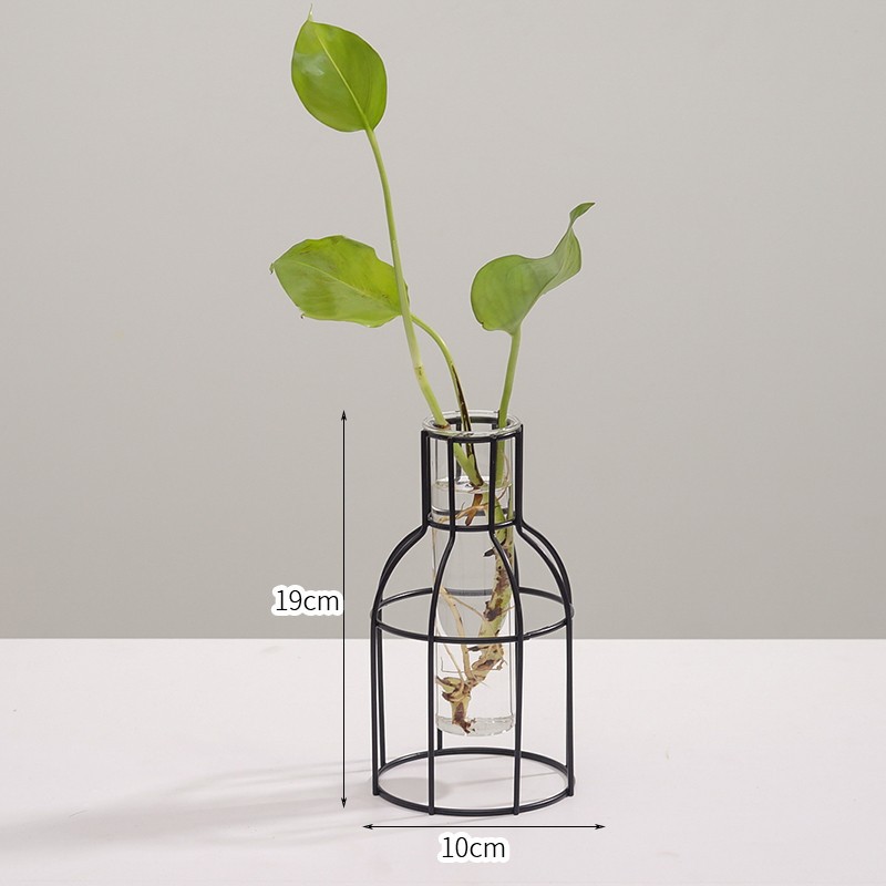 북유럽 스타일 간단한 기하학적 철 투명 유리 수경 꽃병 장식품 거실 말린 꽃 정리 가정 장식