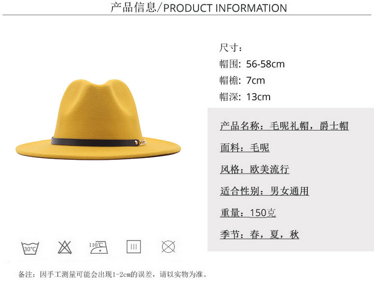 가을과 겨울 울 탑 햇 어린이 영국 블랙 탑 햇 재즈 유럽 및 미국 대외 무역 벨트 버클 플랫 챙 사계절 모든 경기