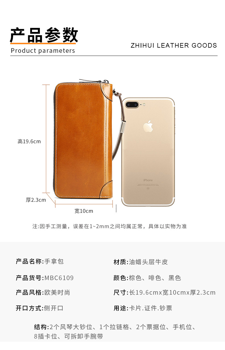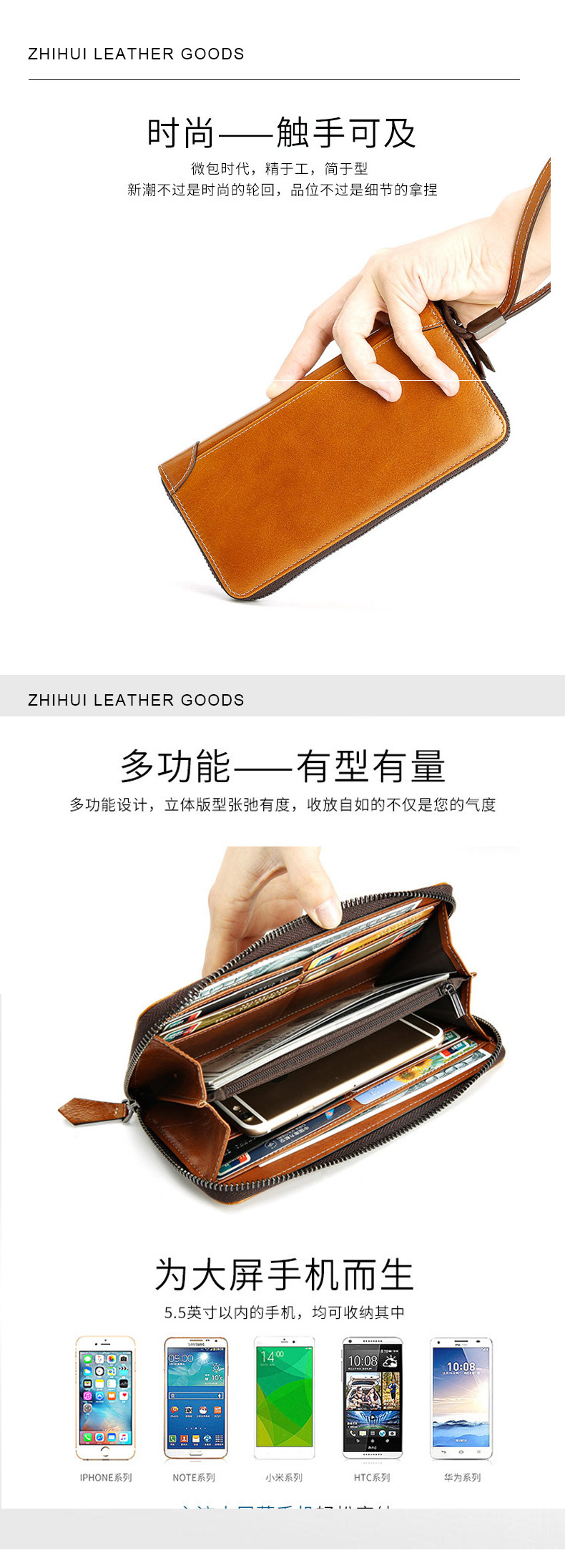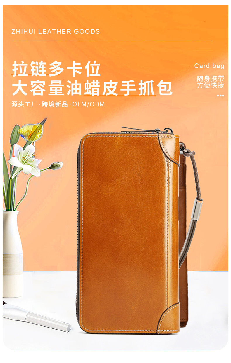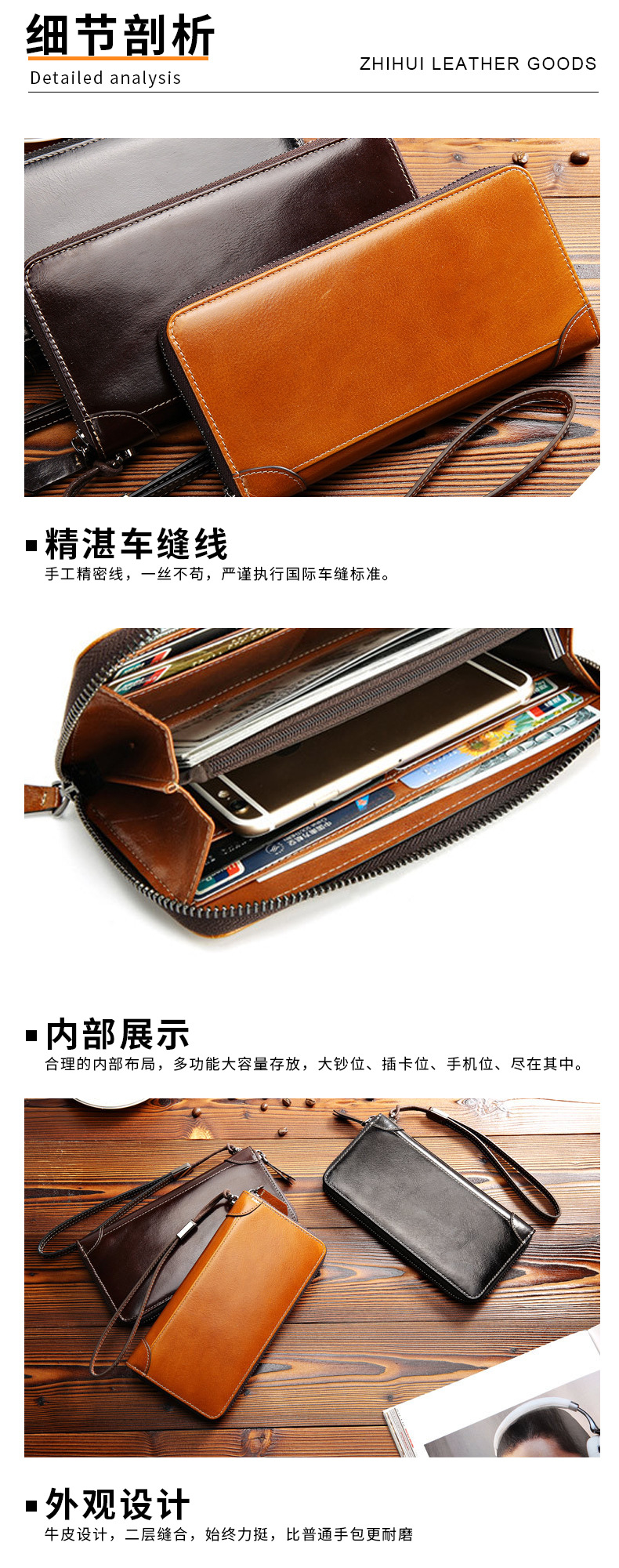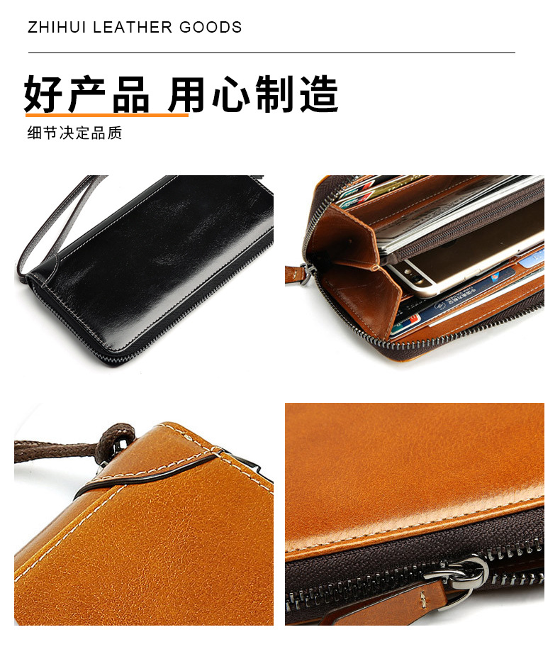 아마존 빈티지 남성 지갑 긴 지퍼 멀티 카드 대용량 오일 왁스 가죽 클러치 가죽 동전 지갑스토어 가기