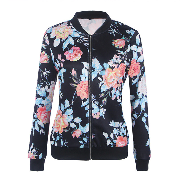 새로운 유럽과 미국 스타일 뜨거운 판매 여성 컬러 패션 가을 재킷 짧은 인쇄 재킷스토어 가기