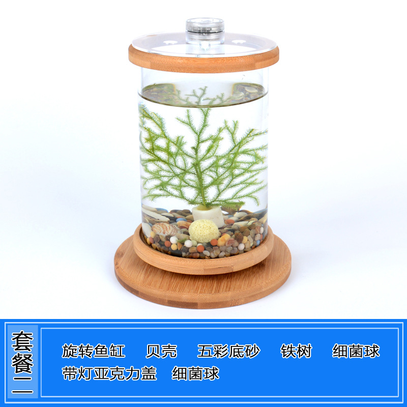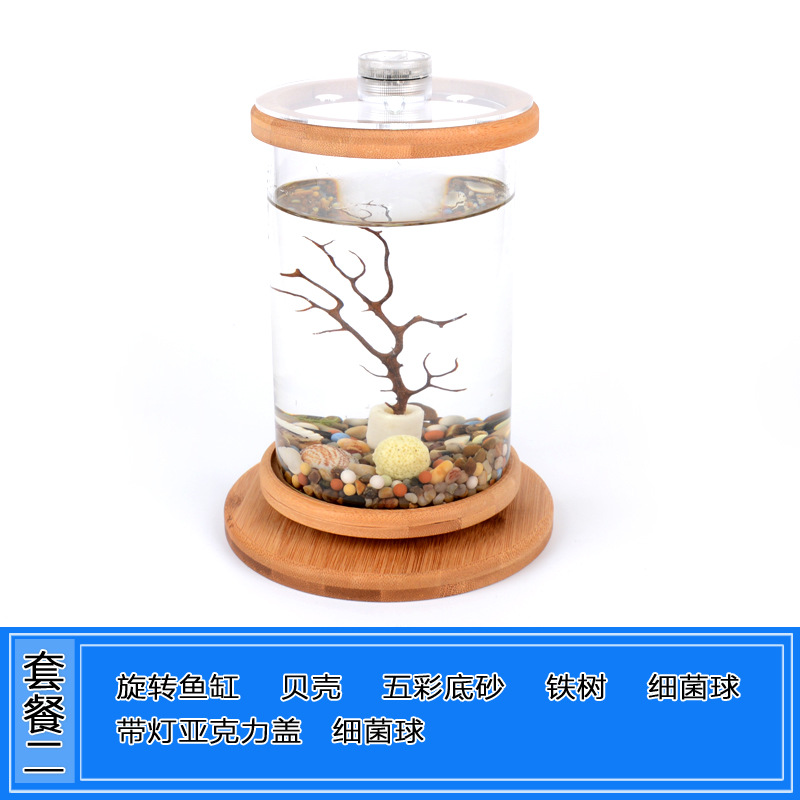 데스크탑 에코 병 크리 에이 티브 사무실 강화 유리 미니어처 탱크 회전 침실 어항 버킷 어항 미니 소형스토어 가기