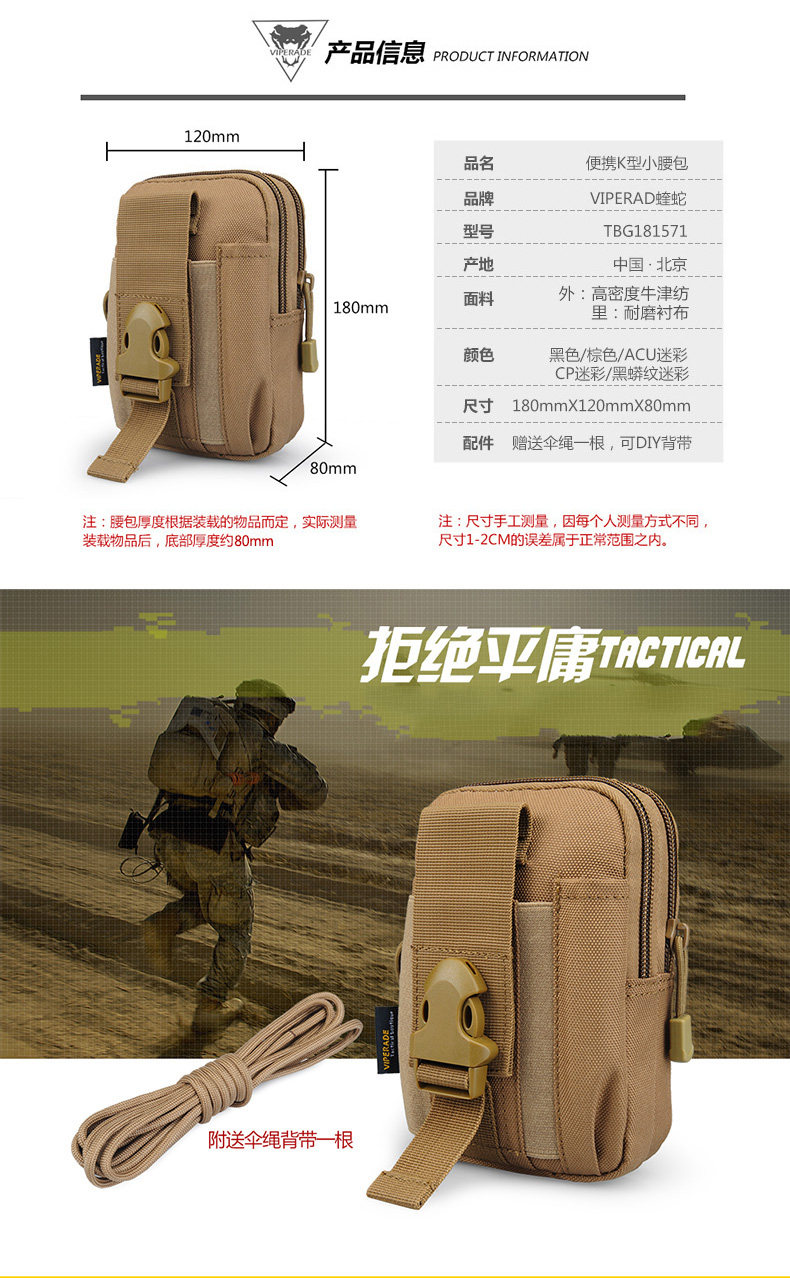VIPERADE 바이퍼 K 형 전술 소형 허리 가방 5.5 인치 대형 화면 휴대 전화 가방 교수형 가방 야외 산악 라이딩 가방스토어 가기