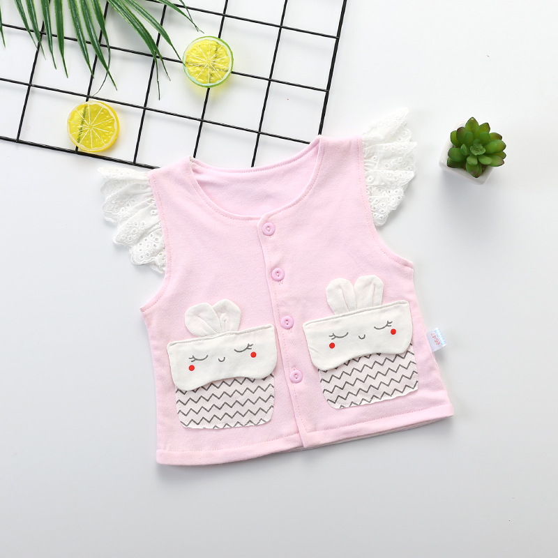 • 봄과 가을 순면 두 토끼 핑크 조끼