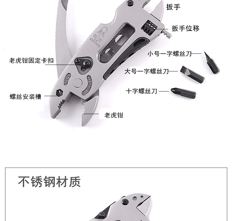 공장 도매 스테인레스 스틸 렌치 플라이어 도구 플라이어 다용도 도구 플라이어 야외 렌치 도구 조합 도구 플라이어