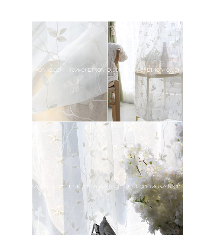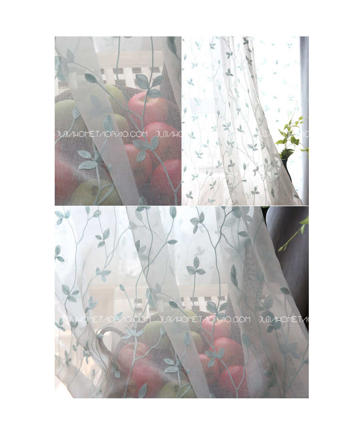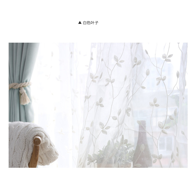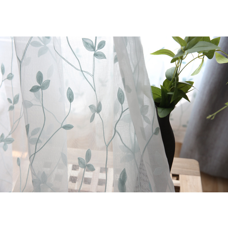 제조업체 마사 자수 나뭇잎 종이줄 반차광 커튼 투명 창문망 간단한 창문 현대적인 나뭇가지와 잎 모양스토어 가기