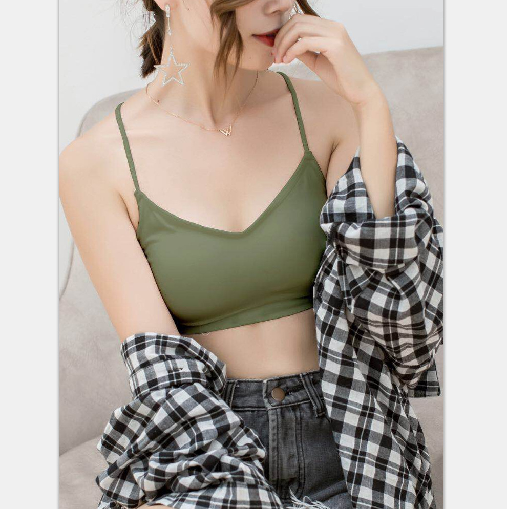 新款无缝美背一片式吊带裹胸简约带胸垫小背心细肩带女士抹胸
