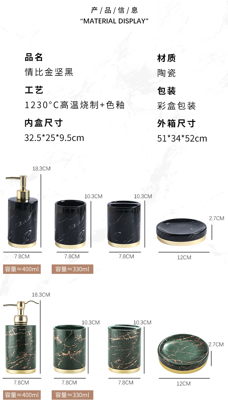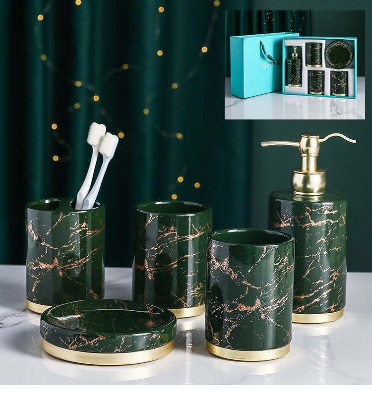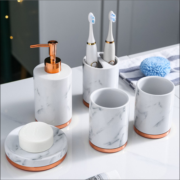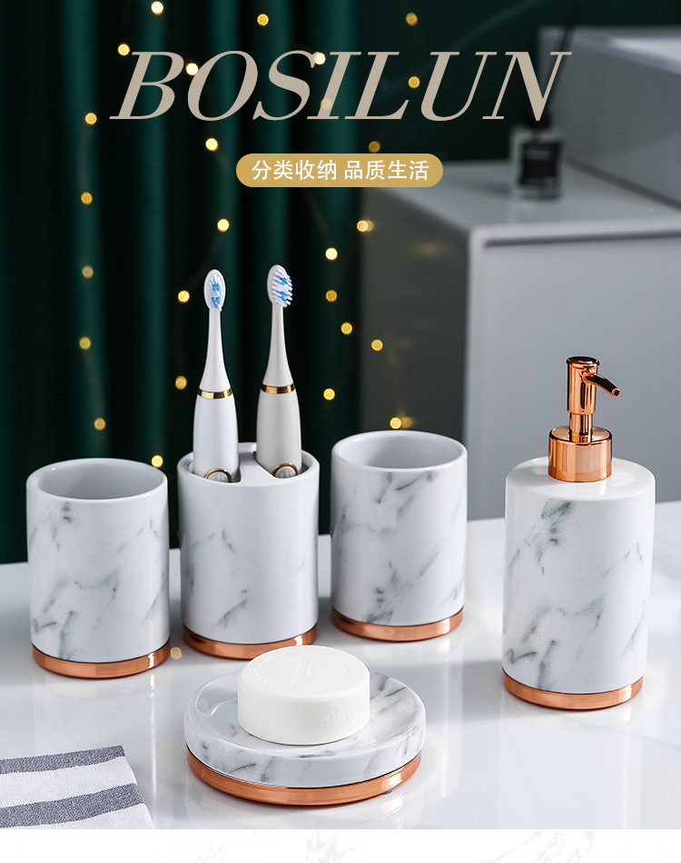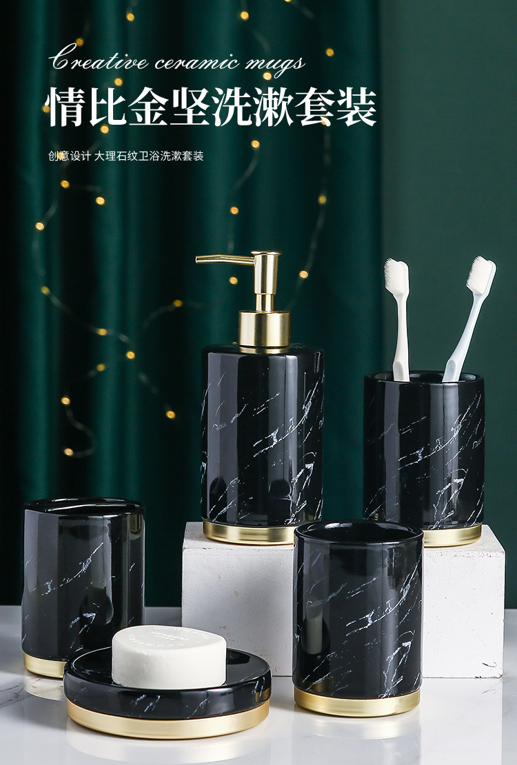 YST 도매 세라믹 욕실 화장실 세트 국경 북유럽 빛 럭셔리 대리석 패턴 욕실 장식 욕실 용품스토어 가기