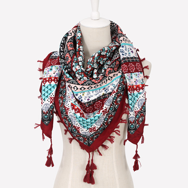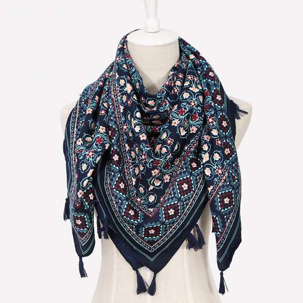 가을과 겨울 패션 복고풍 민족 스타일 인쇄 스카프 여성 술 면화 목도리 뜨거운 판매 대형 사각형 재고 도매