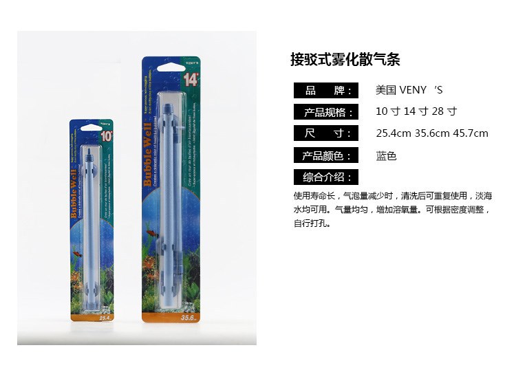 细化气条的细化效果要待浸泡入水中打氧使用半个小时左右才会出现(小气量供氧效果更好,待细化效果出现后,再调节大气量正常使用),请各位买家留意观察,类似雾状的神奇打氧细化效果,给您的静音细化惊喜!!注意:如果需要拼接加长使用的鱼友,请选购同样尺寸的气条进行拼接,由于不同尺寸生产模具不同,会有气压不同现象,所以是需要7寸拼7寸,或10寸拼10寸的。避免7寸拼接10寸这样会有出气量不同的现象。