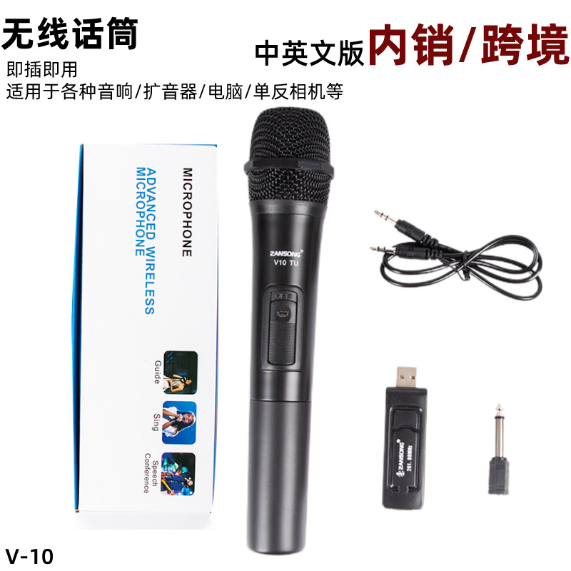 무선 마이크 V10은 스피커/앰프/컴퓨터/카메라에 적합합니다. 휴대용 마이크 USB 인터페이스 국경 간