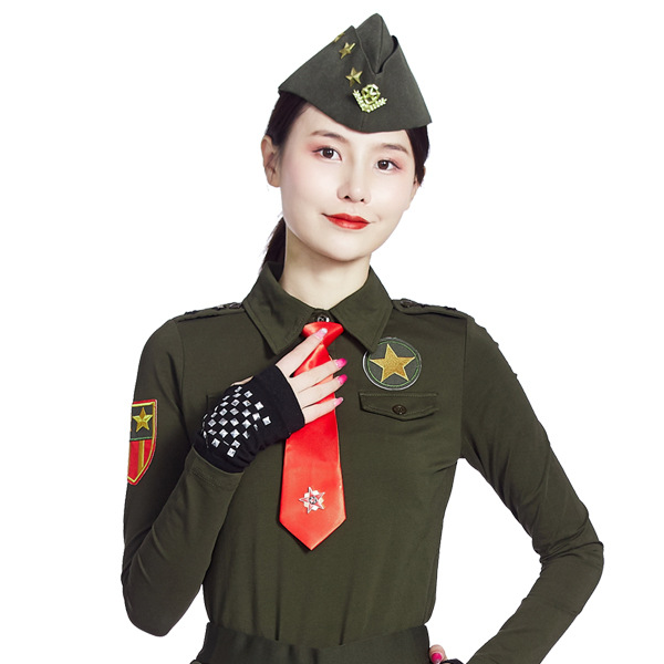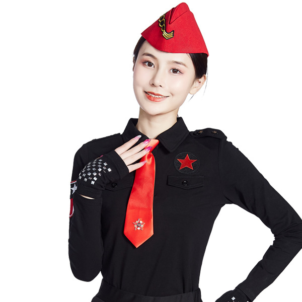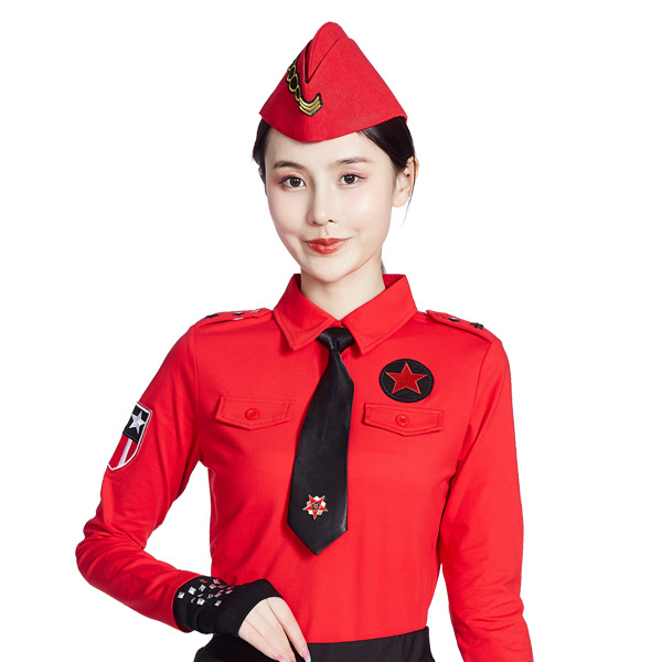 세일러 댄스 의상 여성용 티셔츠 긴 소매 레드 블랙 5 성 라펠 스퀘어 댄스 쇼 육군 팬 야외 코트