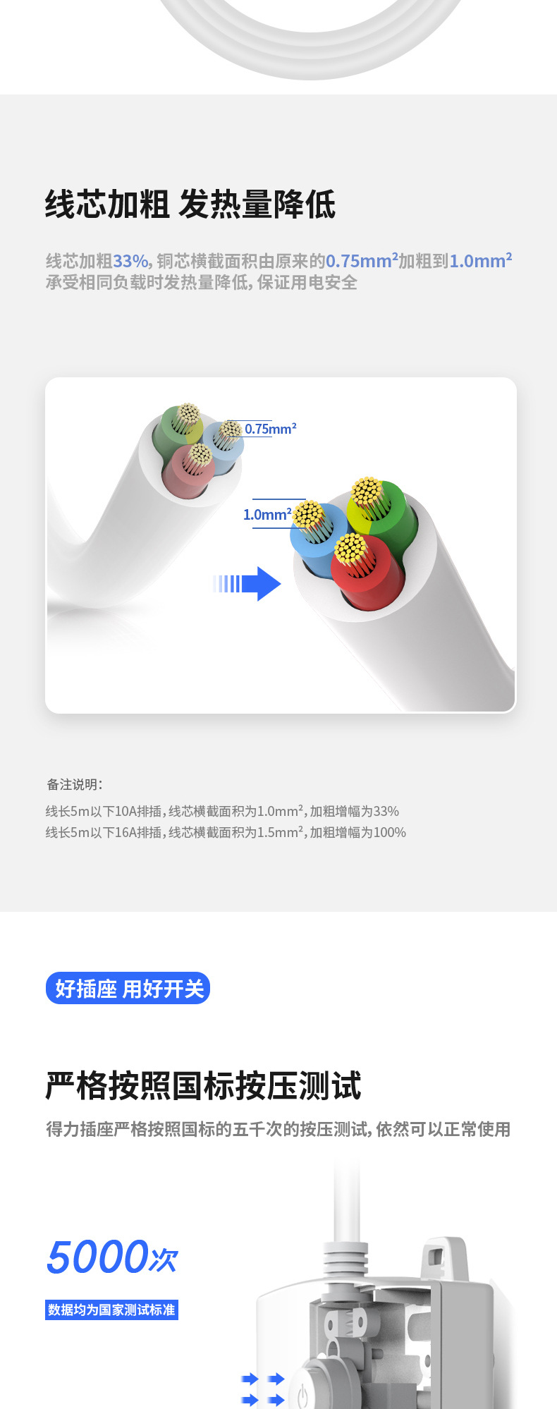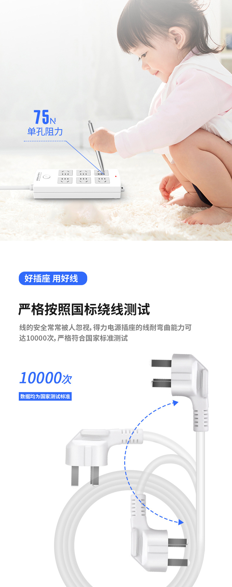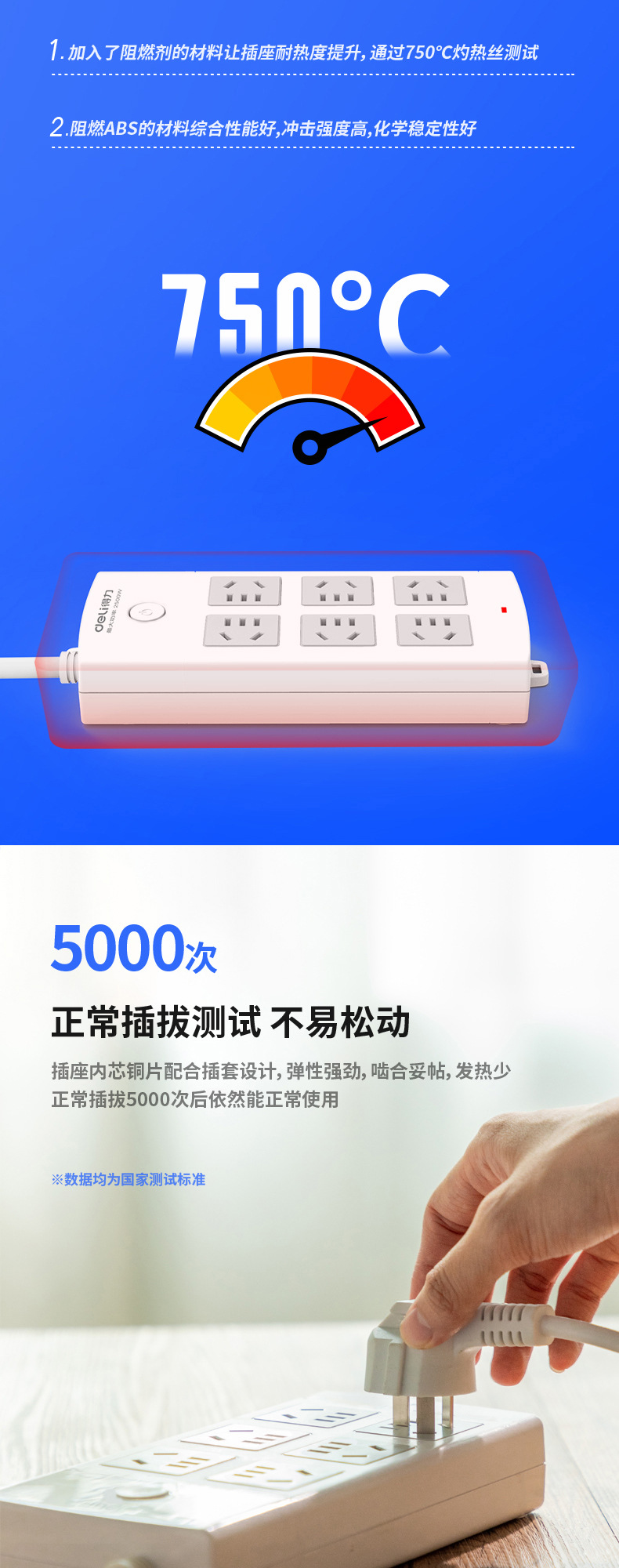 델리 18207 감전 방지 드로보드 소켓 6 홀 10 미터 와이어 패치 보드 배선 보드 패치 전원 코드 패치