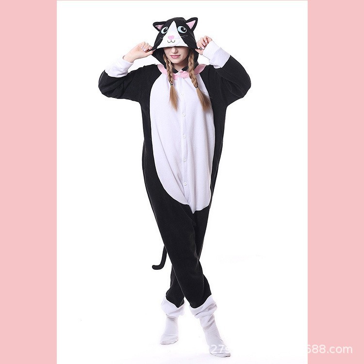 크로스 국경 도매 만화 원피스 잠옷 가을과 겨울 보라색 밤 고양이 폴라 양털 커플 가정복 긴 소매 잠옷스토어 가기