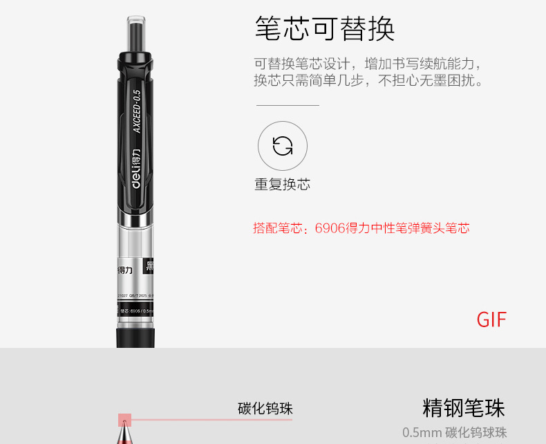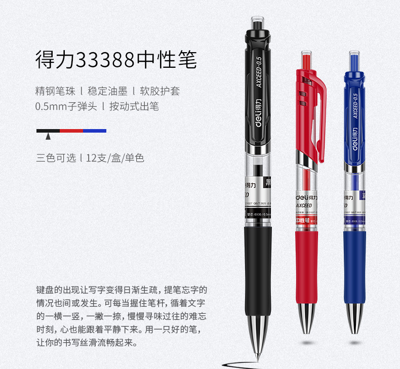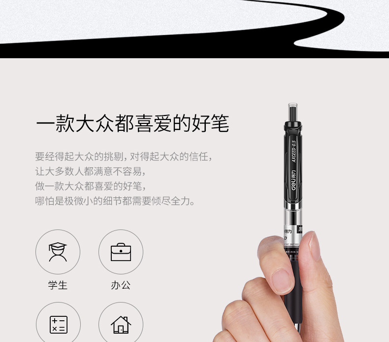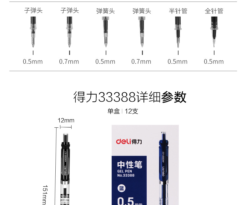 델리 프레스 젤 펜 33388 블랙 0.5 리필 학생 시험 프레스 서명 펜 사무실 문구스토어 가기