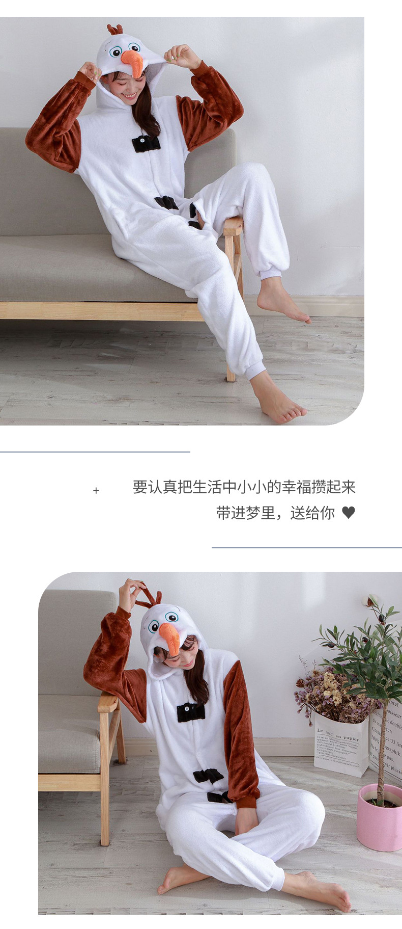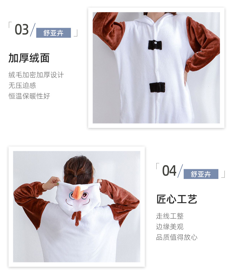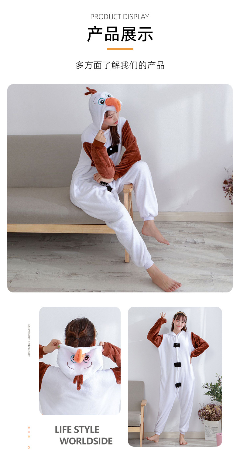 가을 겨울 스노우보이 만화 원피스 잠옷 얼음과 눈의 사랑 눈사람 홈웨어 커플용 플란넬스토어 가기