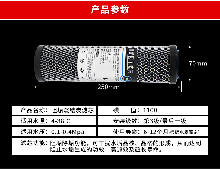 정수기 필터 요소 10inch 가정용 범용 코코넛 껍질 활성탄 필터 요소 스케일 방지 탄소 스케일 제거 소결 탄소 막대 필터 요소