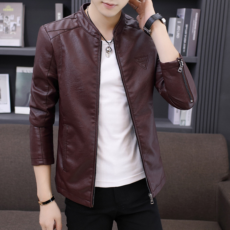 남성 가죽 자켓 겨울 한국 스타일 슬림핏 트렌디 캐주얼 다용도 젊은 남성용 멋진 PU 자켓 스탠드 칼라 플리스 안감 가죽 자켓