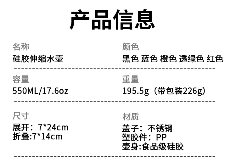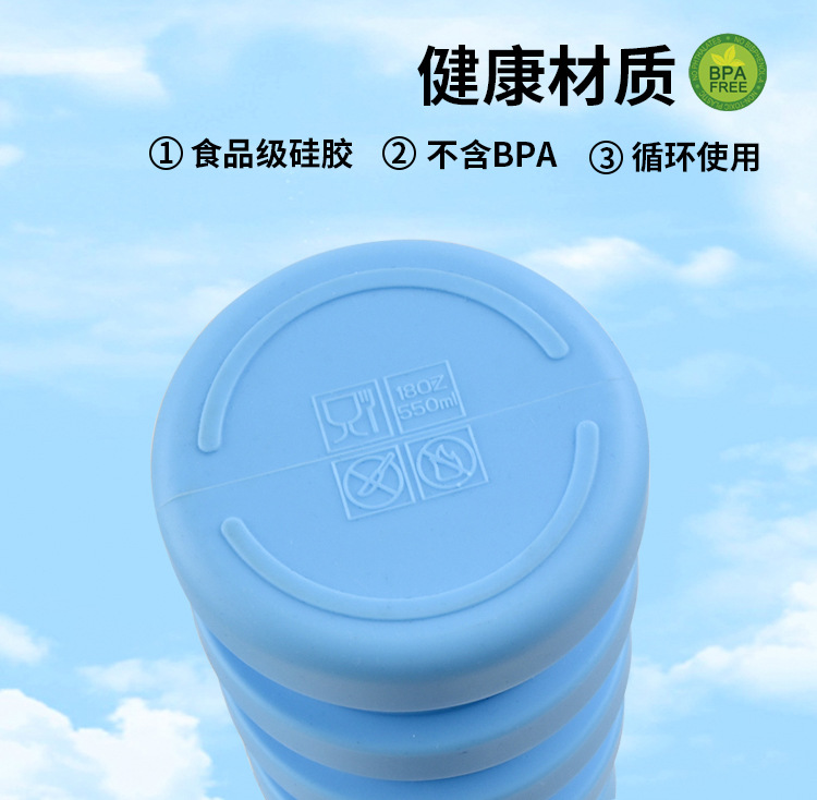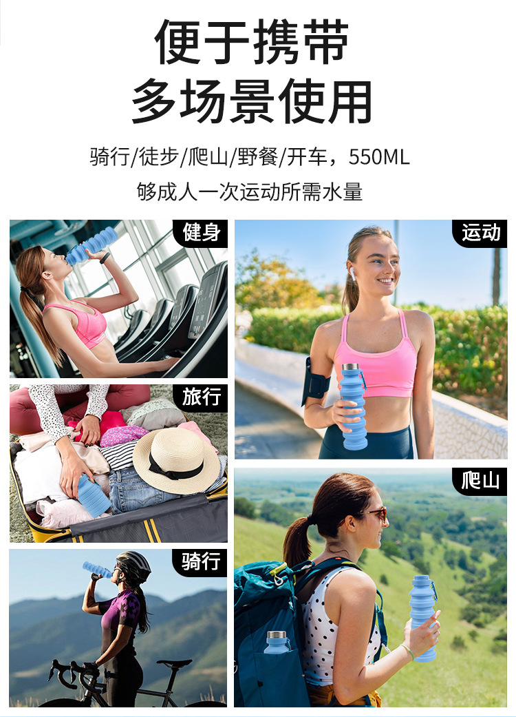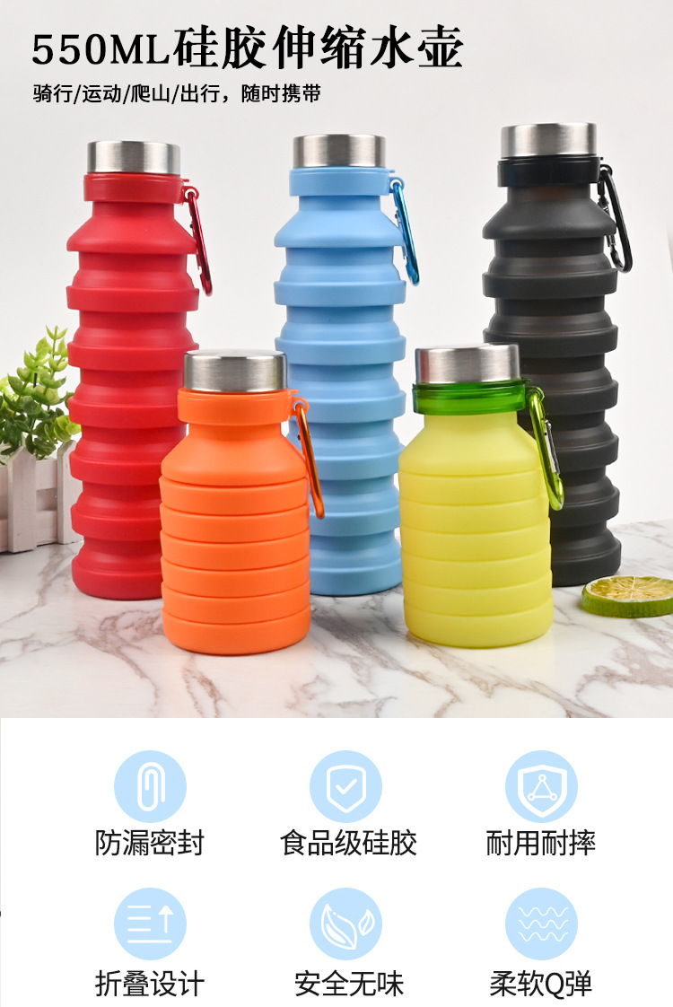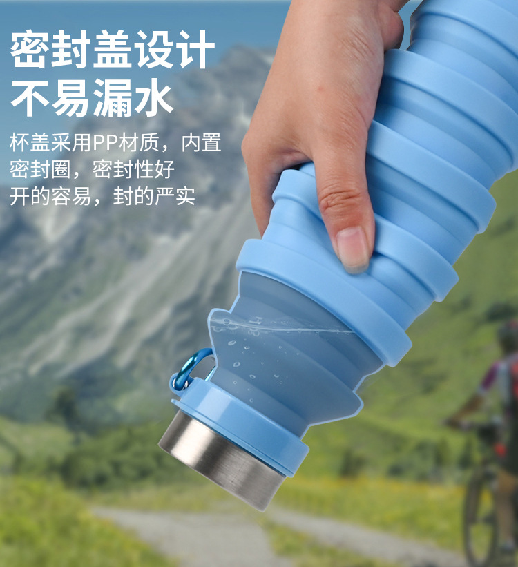 국경 간 독점 도매 크리 에이 티브 휴대용 야외 휴대용 컵 스포츠 주전자 식품 등급 실리콘 접는 물 컵