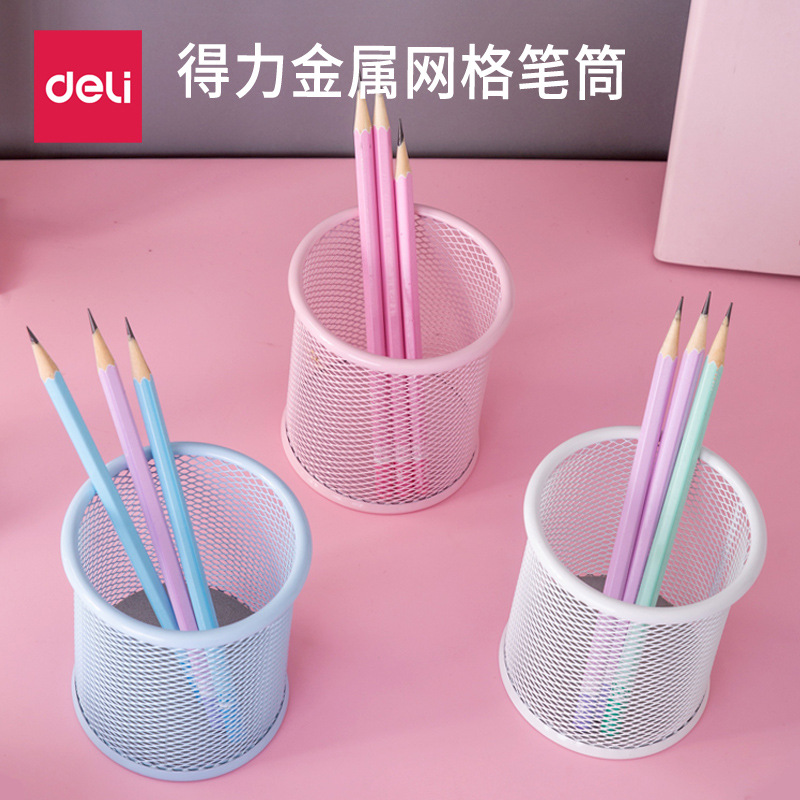 델리 9153 학생 다채로운 라운드 펜 홀더 금속 와이어 메쉬 펜 홀더 메쉬 펜 홀더 비즈니스 사무실 펜 홀더