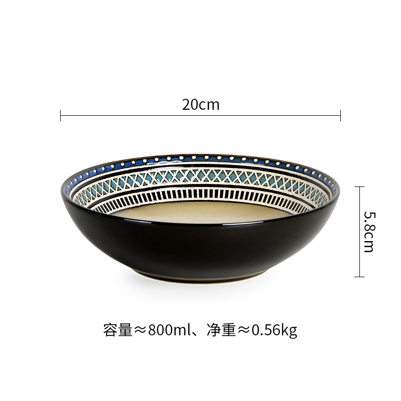 9英寸大汤碗:直径:23.3cm、高:8.4cm、容量:2L、净重:1kg 装箱数:10个/箱