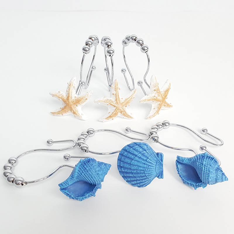 블루 쉘 소라 화이트 불가사리 수지 샤워 커튼 후크 해양 스테인레스 스틸 더블 후크 금속 후크 커튼 후크