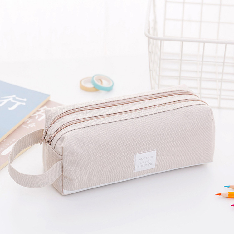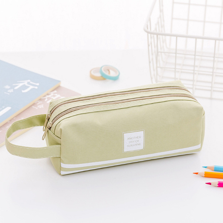공장 직공급 재고 새로운 신선한 필통 창조적 인 대용량 핸들 더블 지퍼 필통 학생 문구 가방