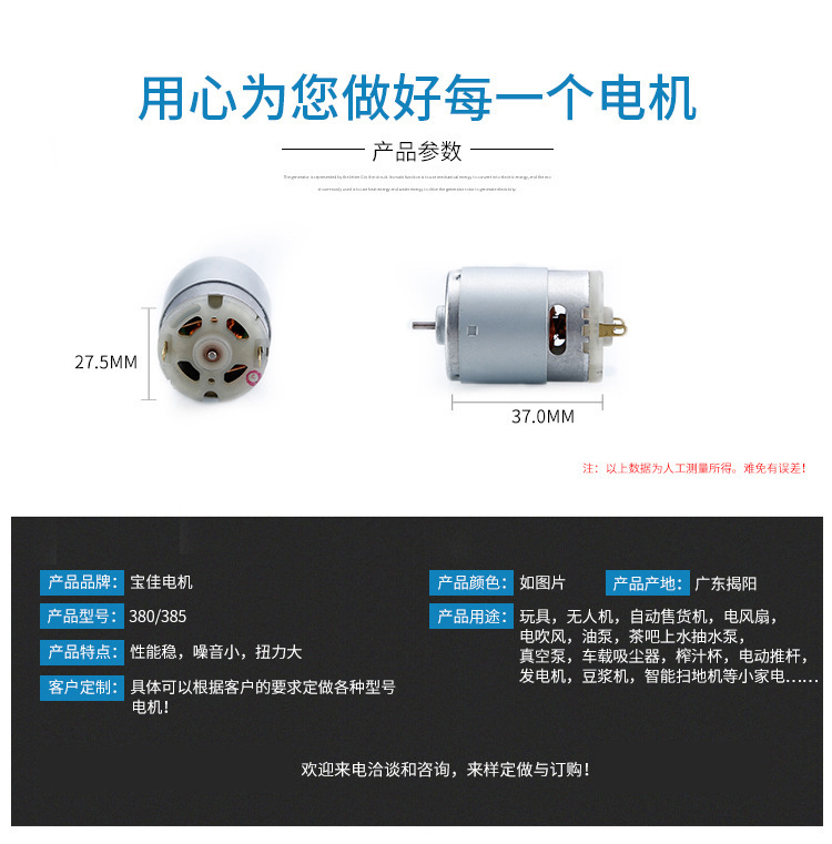 380 마이크로 모터 대형 흡입 자동차 진공 청소기 전기 먼지 제거 DC 모터 어린이 트램 모터