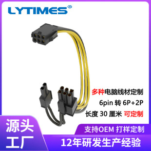 6pin母转6+2p电源线cpu显卡线6p母转8p 服务器电脑线材一分二纯铜