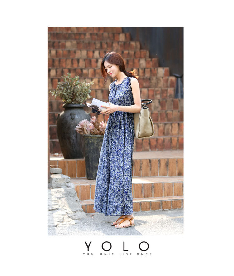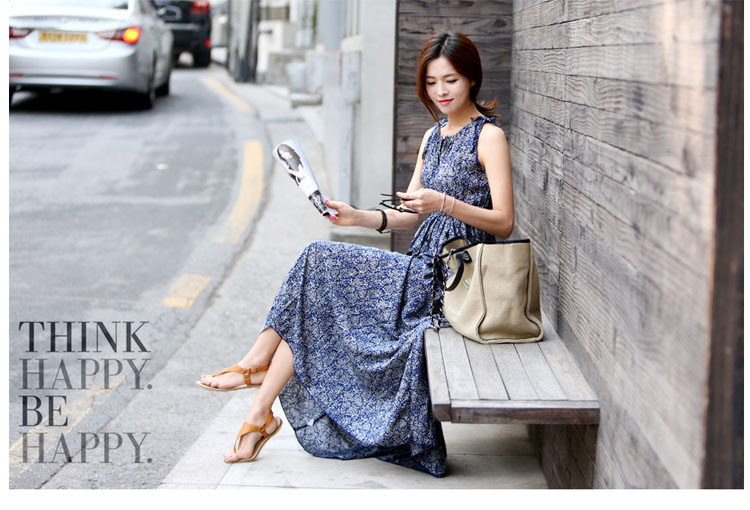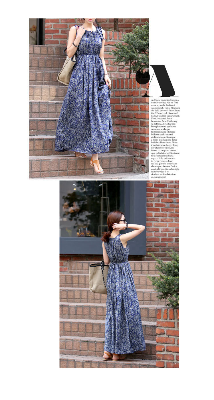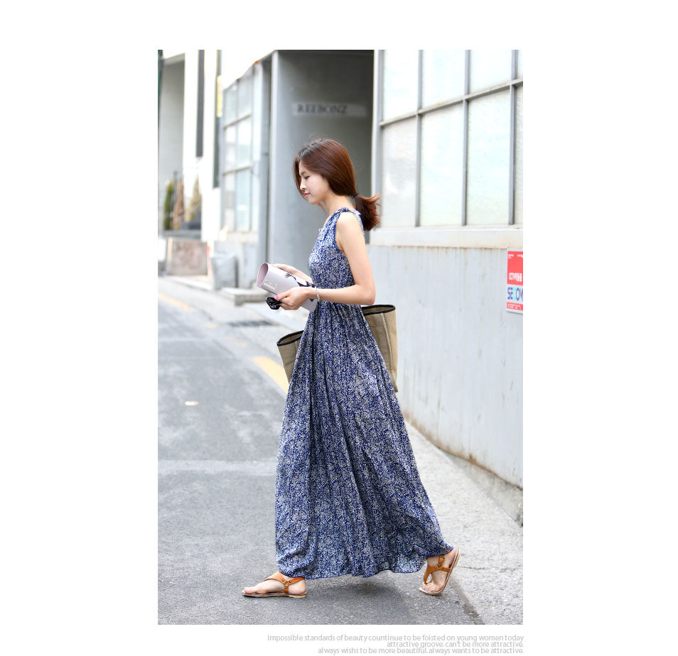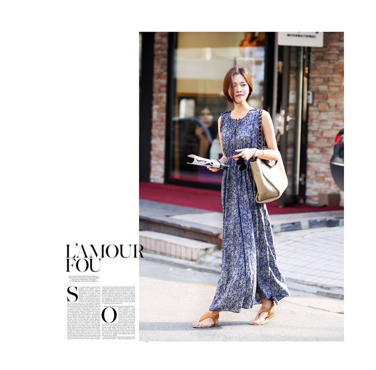 2023 봄과 여름 새 여성의 민소매 꽃 슬리밍 쉬폰 원피스 슬림 원피스 보헤미안 스커트스토어 가기