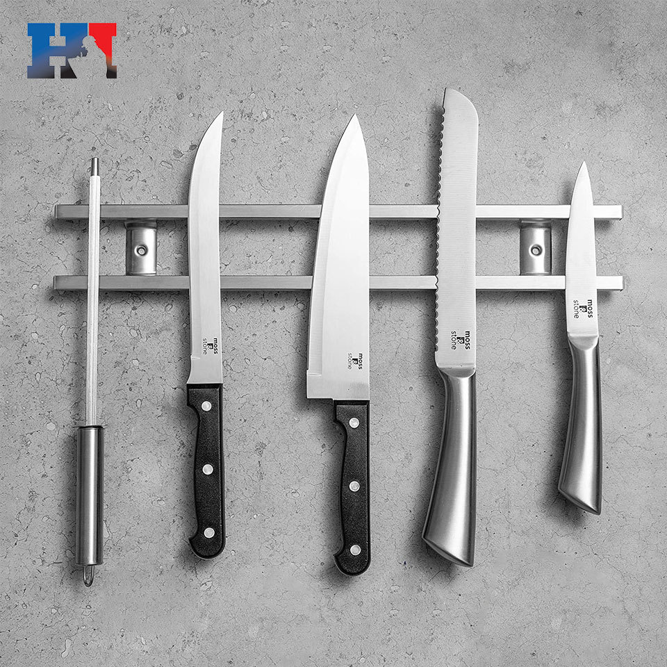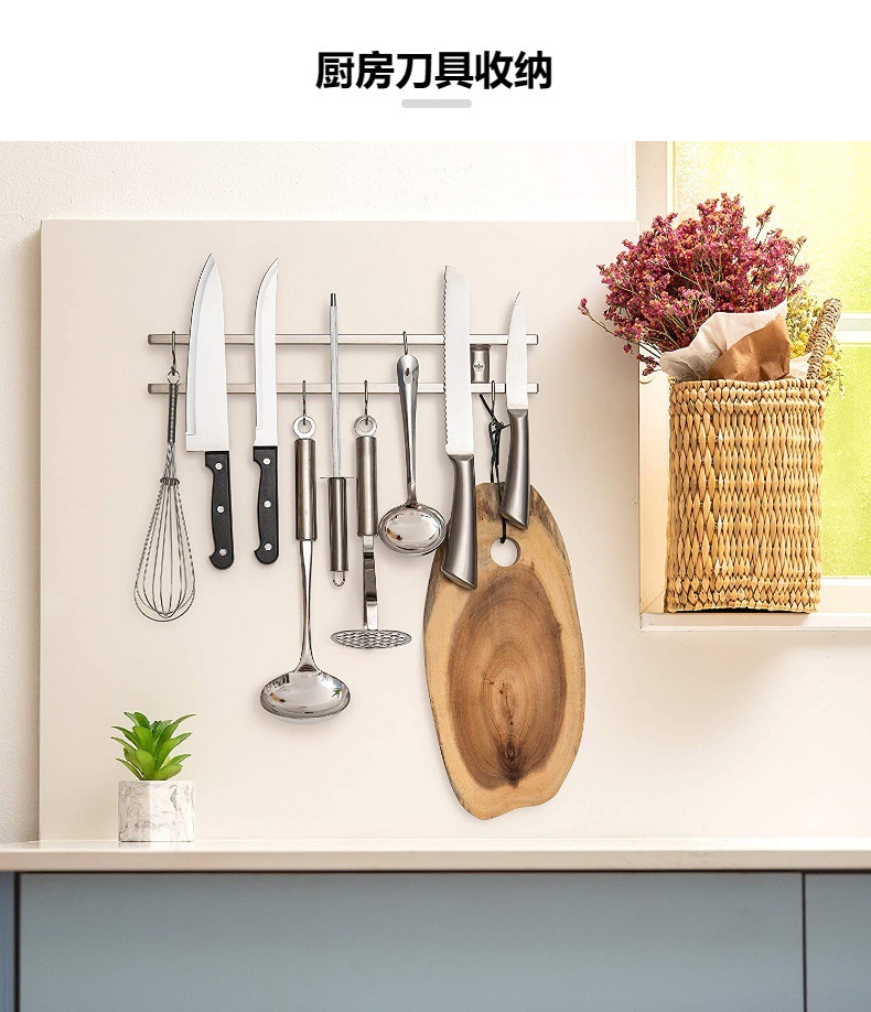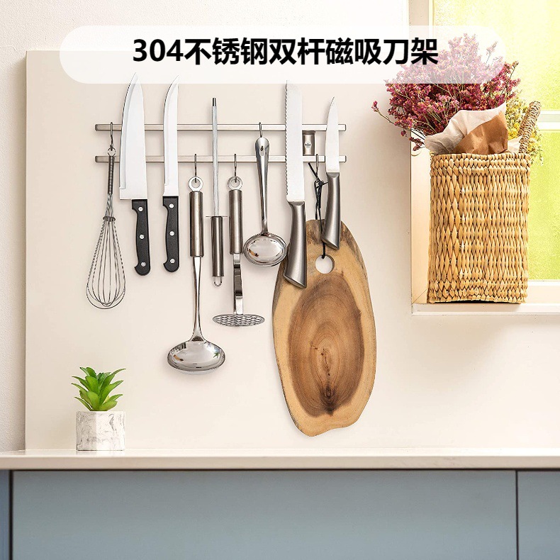 국경 간 공급 사각 튜브 스테인레스 스틸 마그네틱 나이프 홀더 자석 주방 용품 선반 강력한 주방 칼 홀더 더블 로드 마그네틱