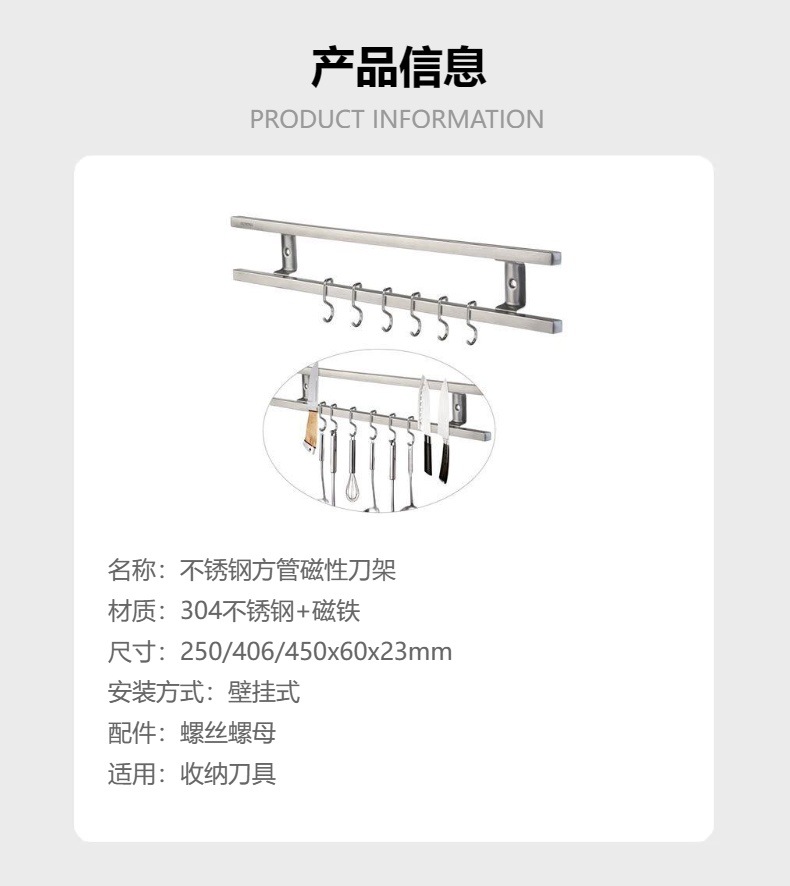 국경 간 공급 사각 튜브 스테인레스 스틸 마그네틱 나이프 홀더 자석 주방 용품 선반 강력한 주방 칼 홀더 더블 로드 마그네틱스토어 가기