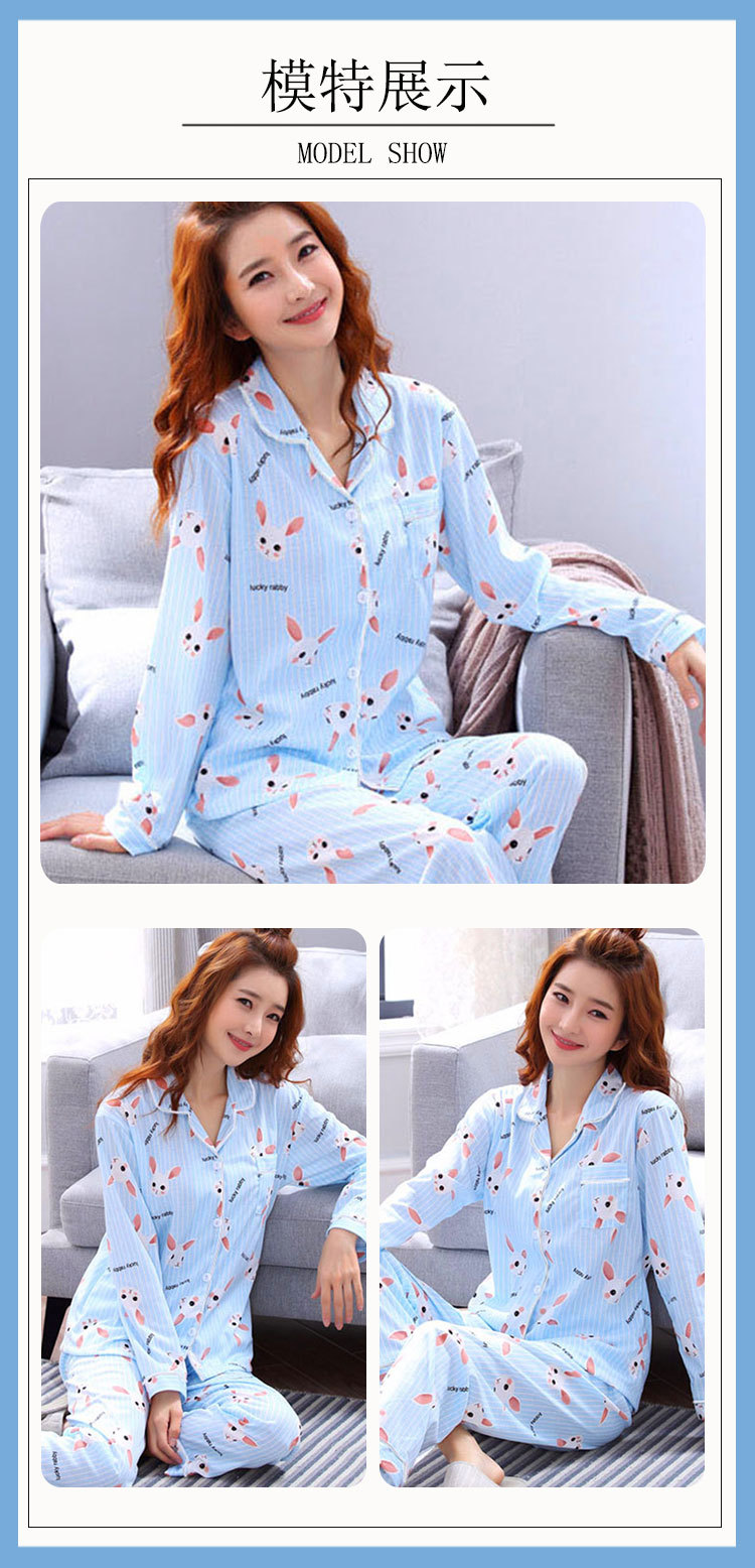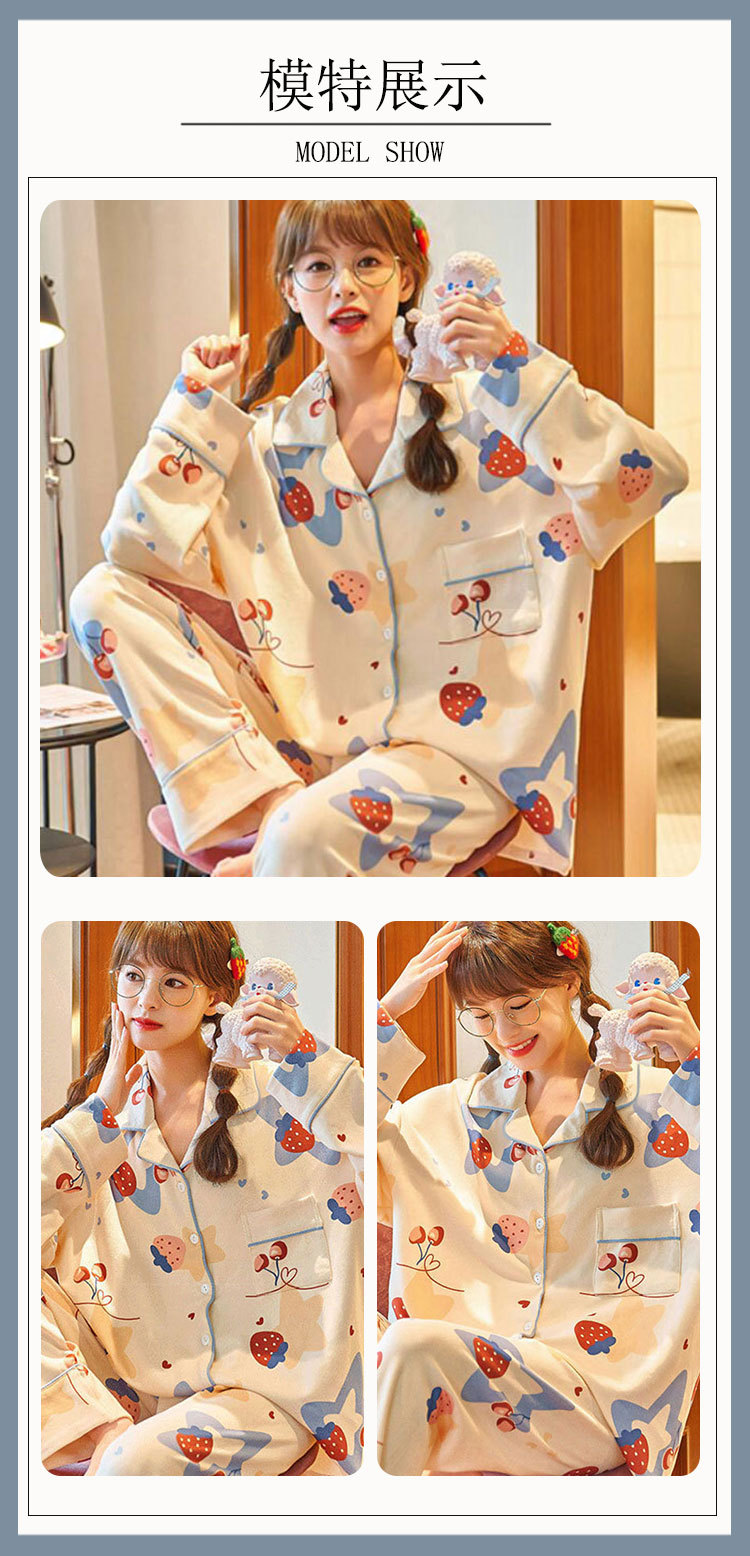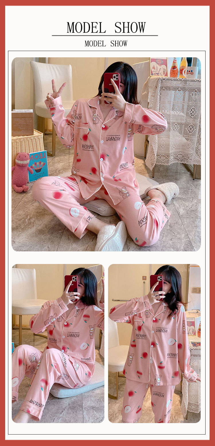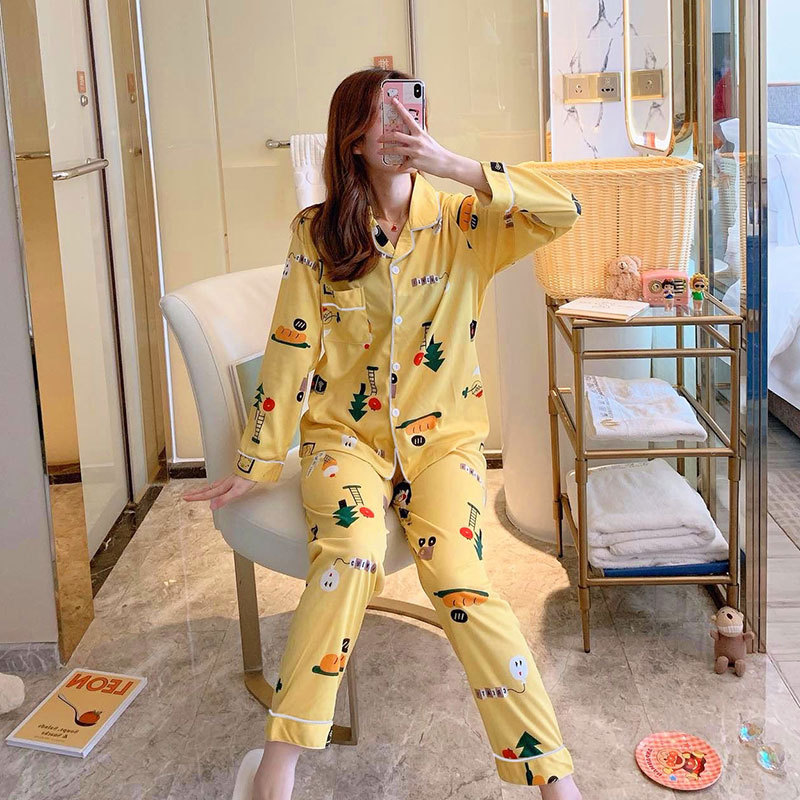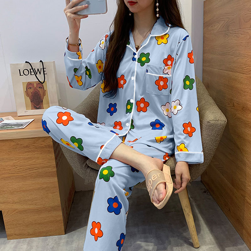 봄 가을 새 잠옷 여성용 카디건 긴팔 바지 한국 스타일 소녀 간단한 만화 홈 옷 세트 입을 수 있습니다스토어 가기