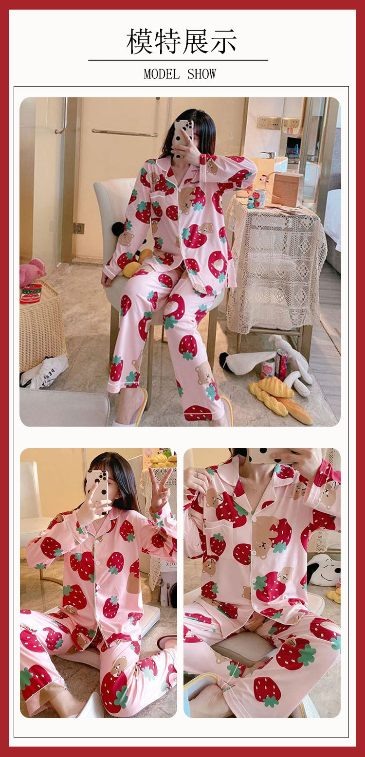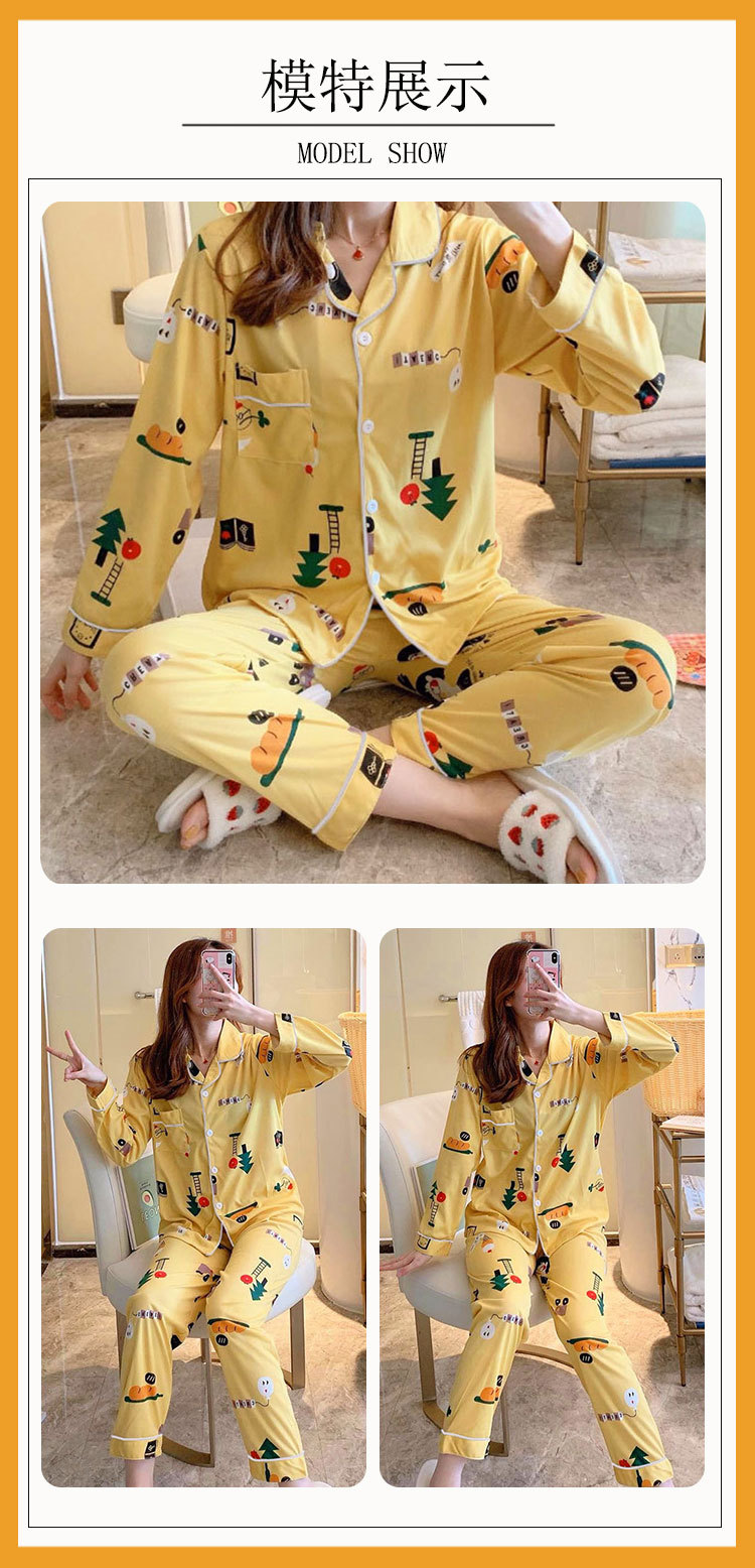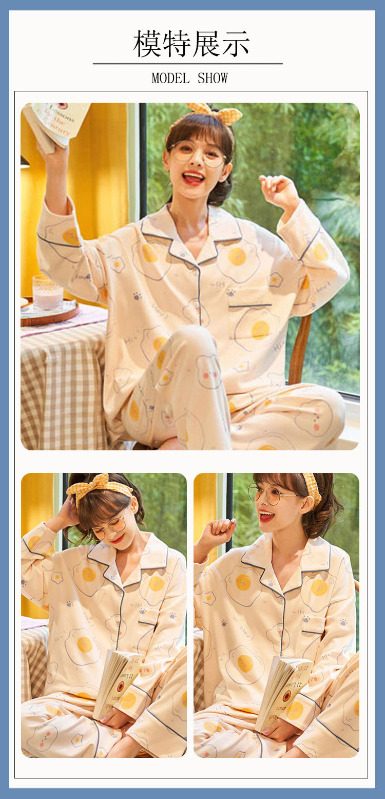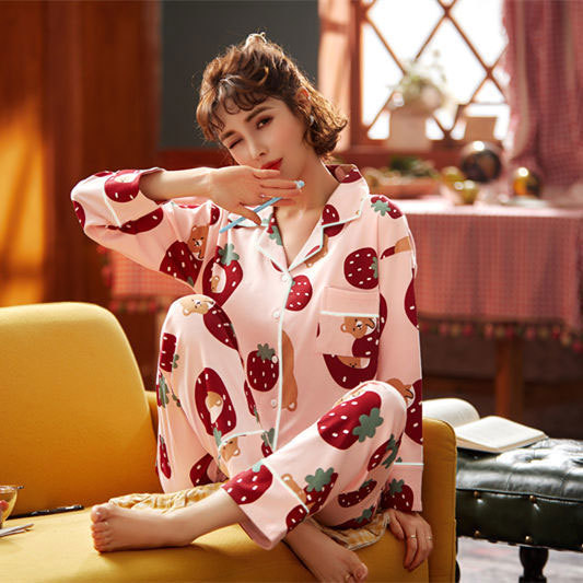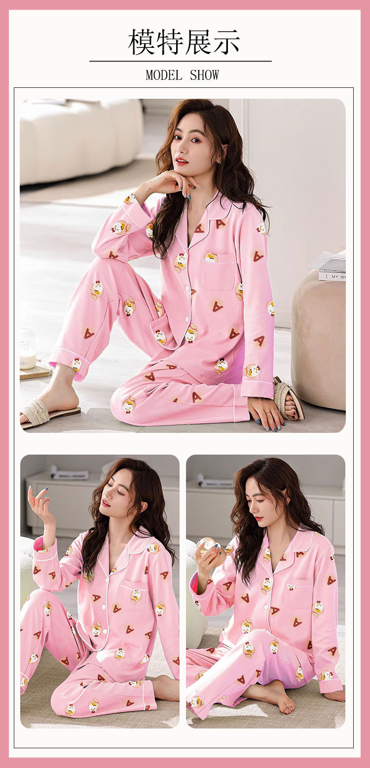 봄 가을 새 잠옷 여성용 카디건 긴팔 바지 한국 스타일 소녀 간단한 만화 홈 옷 세트 입을 수 있습니다스토어 가기