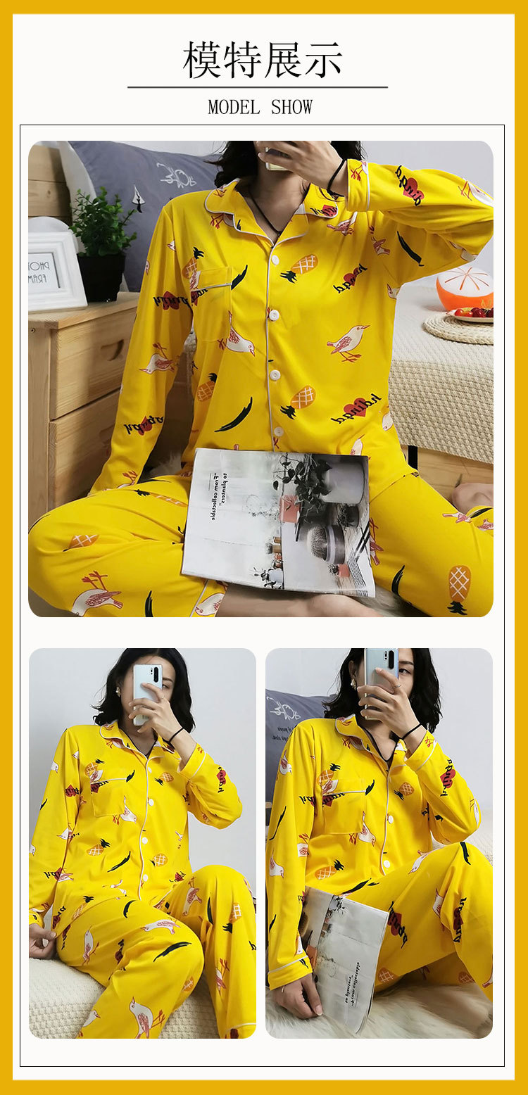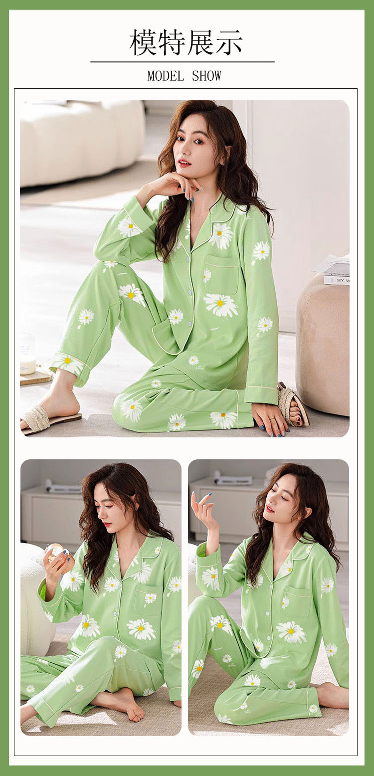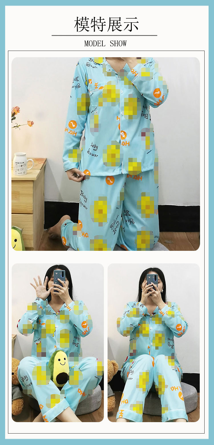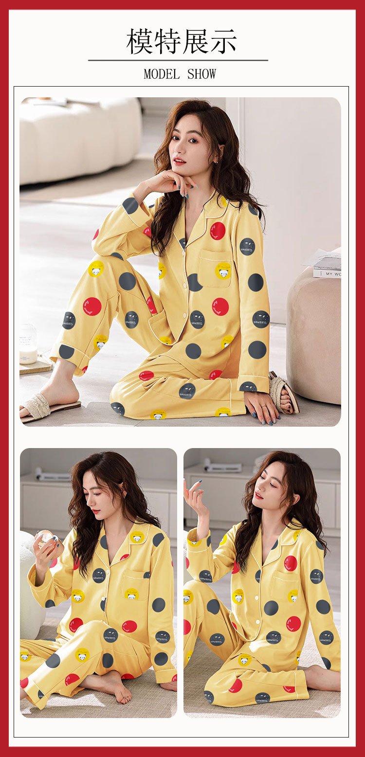봄 가을 새 잠옷 여성용 카디건 긴팔 바지 한국 스타일 소녀 간단한 만화 홈 옷 세트 입을 수 있습니다스토어 가기