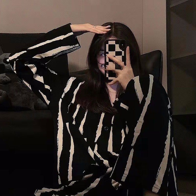 • S 콩 페이스트와 긴 줄무늬 카디건