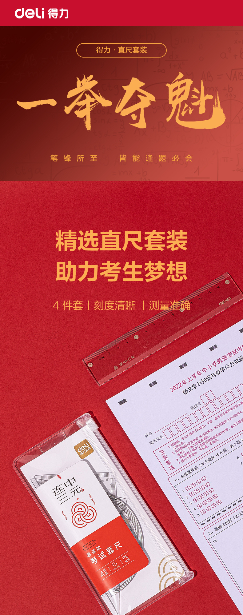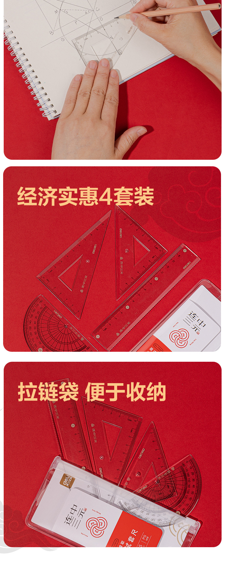 델리 71950 학생 시험 자 자 삼각 각도기 포함 3 위안 4 피스 세트라도스토어 가기