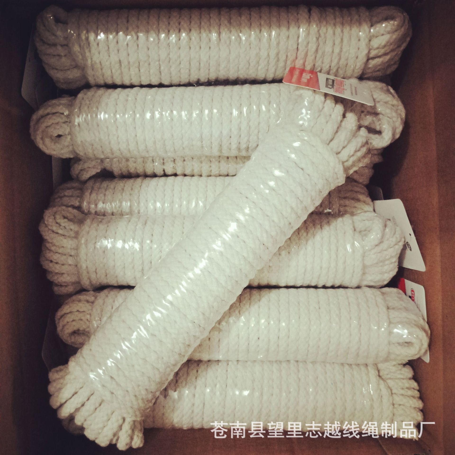 苍南县望里志越线绳制品厂(原苍南县金特利线绳制品厂)是一家以综合系列为主,集生产、加工、研发一体的企业。现主要生产棉线绳、纯棉绳、合股绳、扭结绳、宠物棉绳、编织绳、钩针绳、麻绳、捆扎绳、包芯绳、棉纱拖把头,超细纤维拖把头、木杆棉纱拖把等产品。
