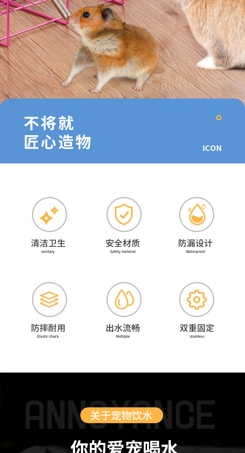 강아지 걸이식 급수기 500ML 롤링볼 무젖음 강아지 급수기 개와 고양이 겸용 토끼 애완동물 물병스토어 가기