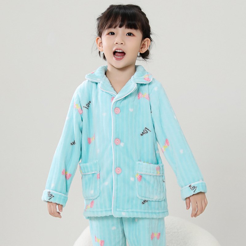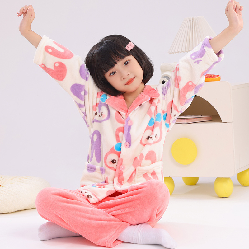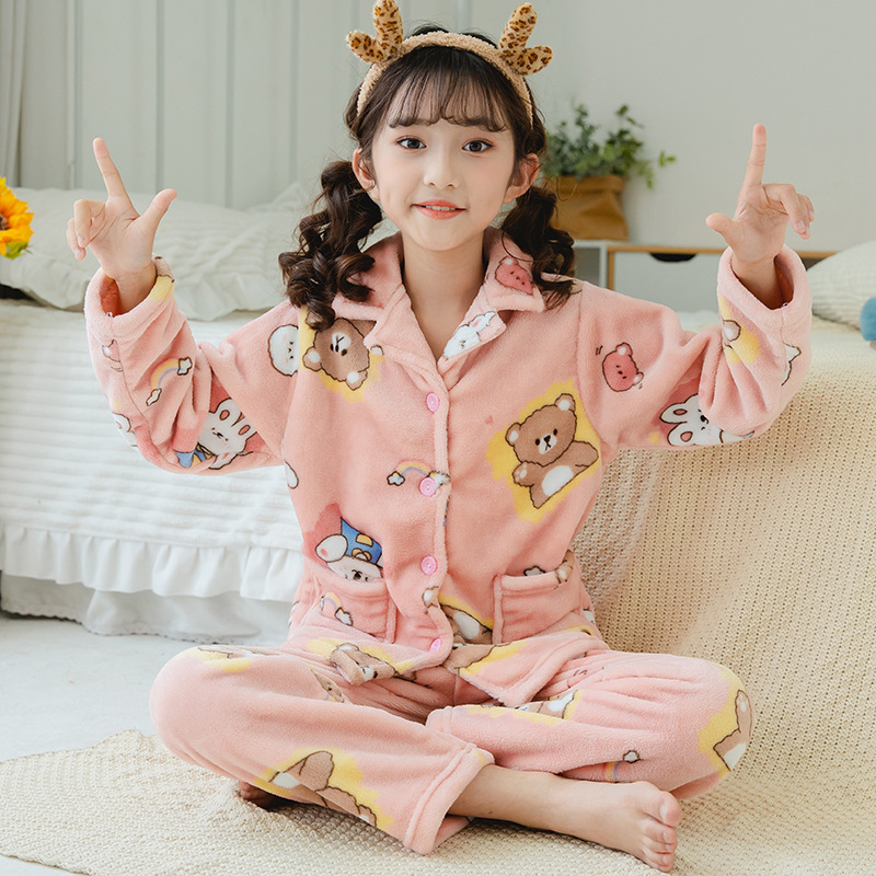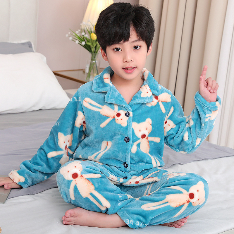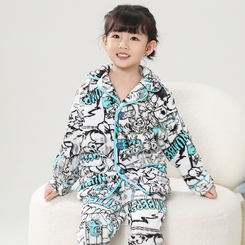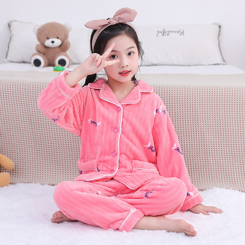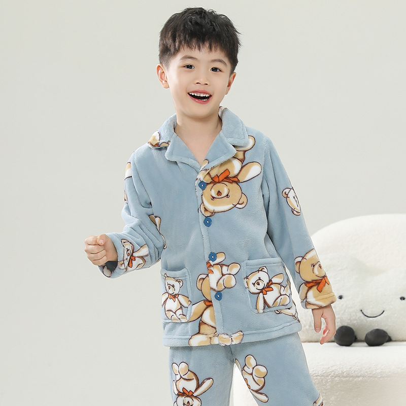 어린이 플란넬 잠옷 어린이 가정 옷 아기 산호 양털 잠옷 소년과 소녀 세트 도매스토어 가기