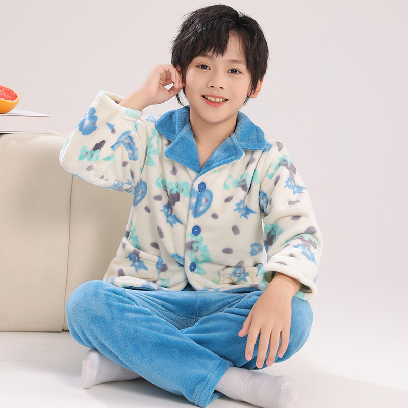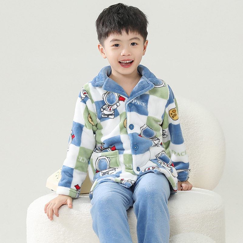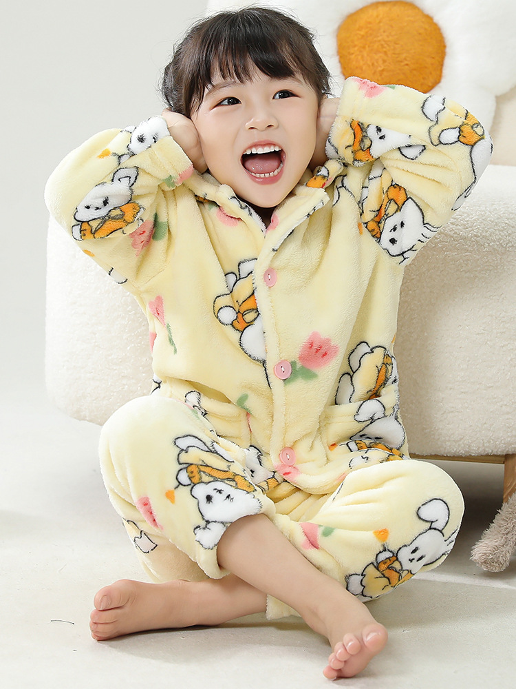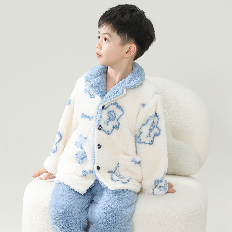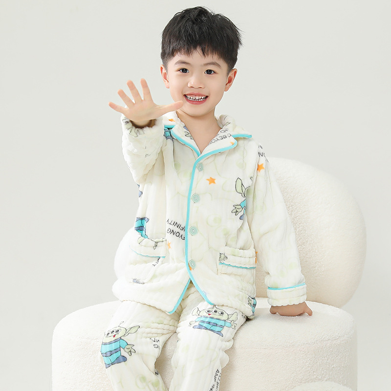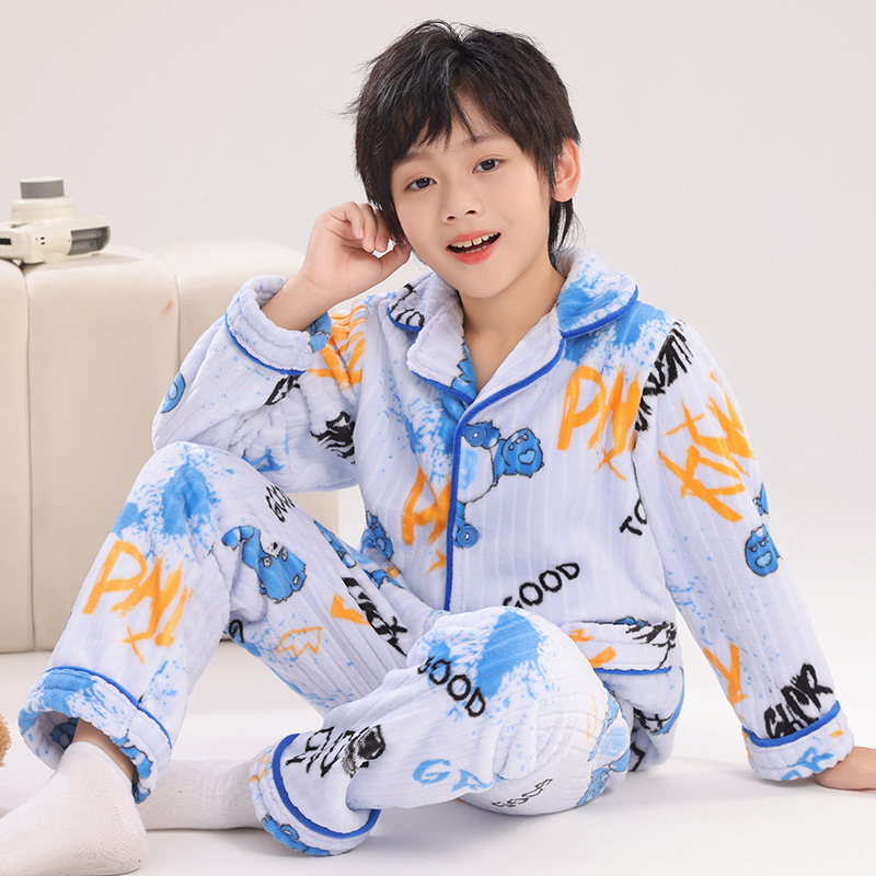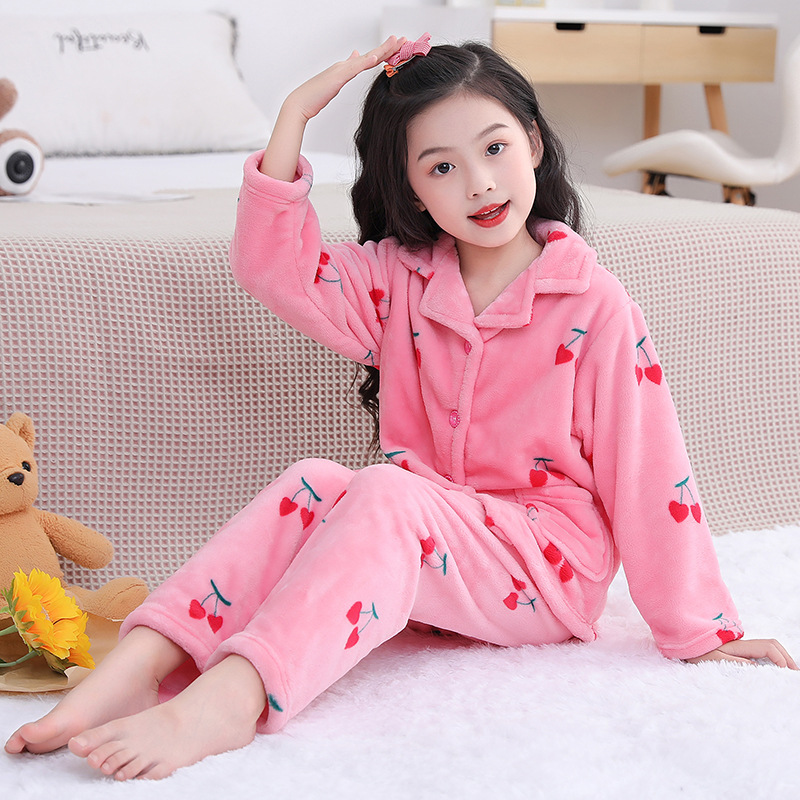 어린이 플란넬 잠옷 어린이 가정 옷 아기 산호 양털 잠옷 소년과 소녀 세트 도매스토어 가기