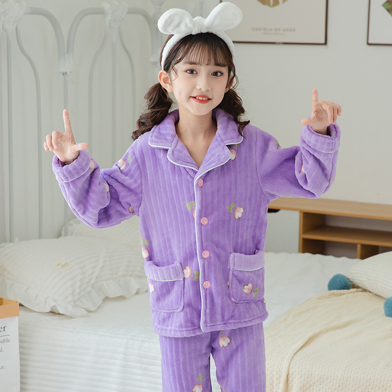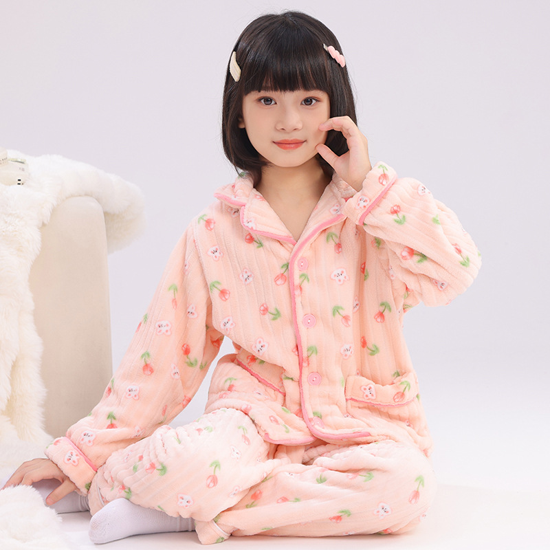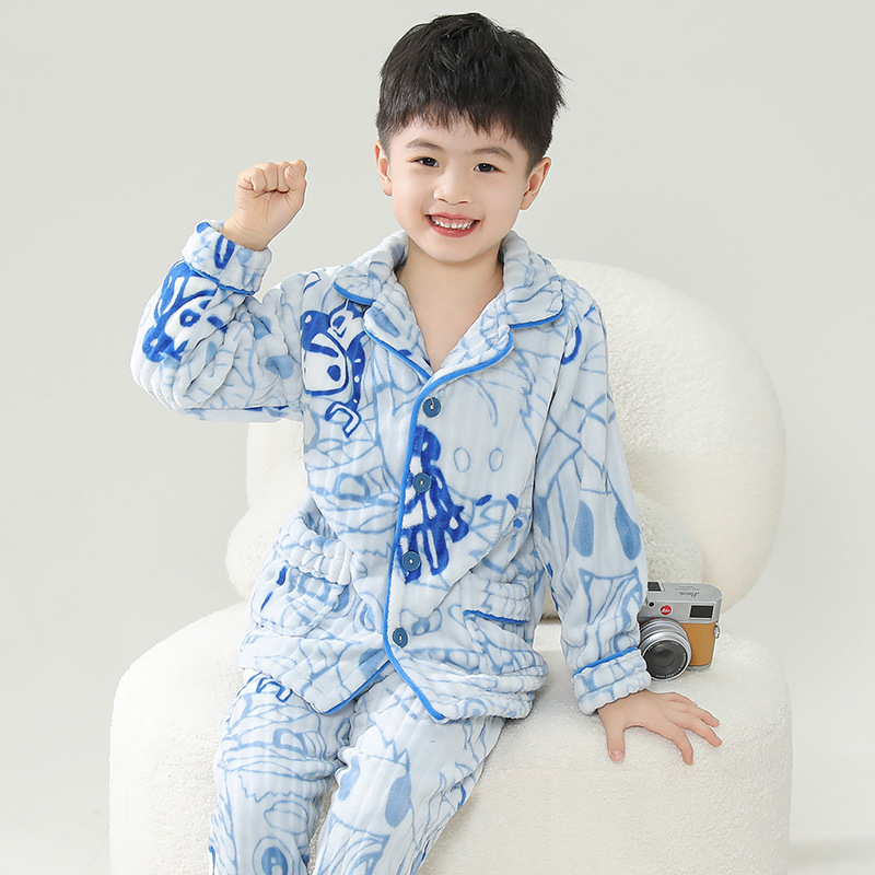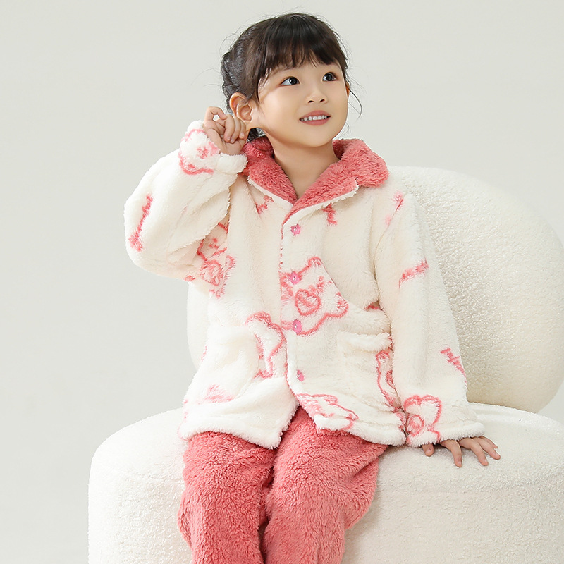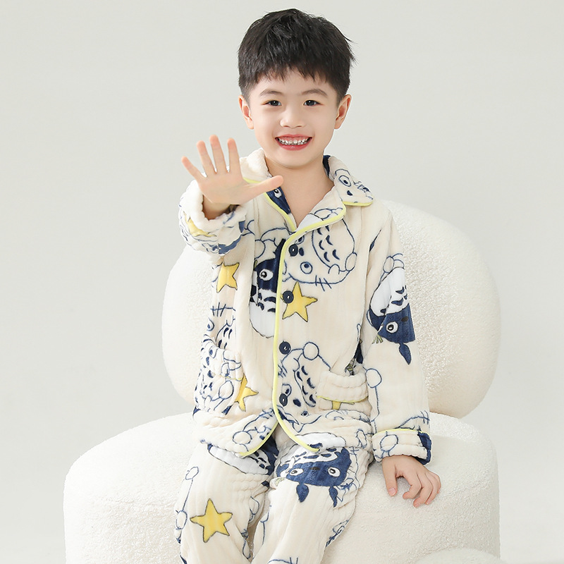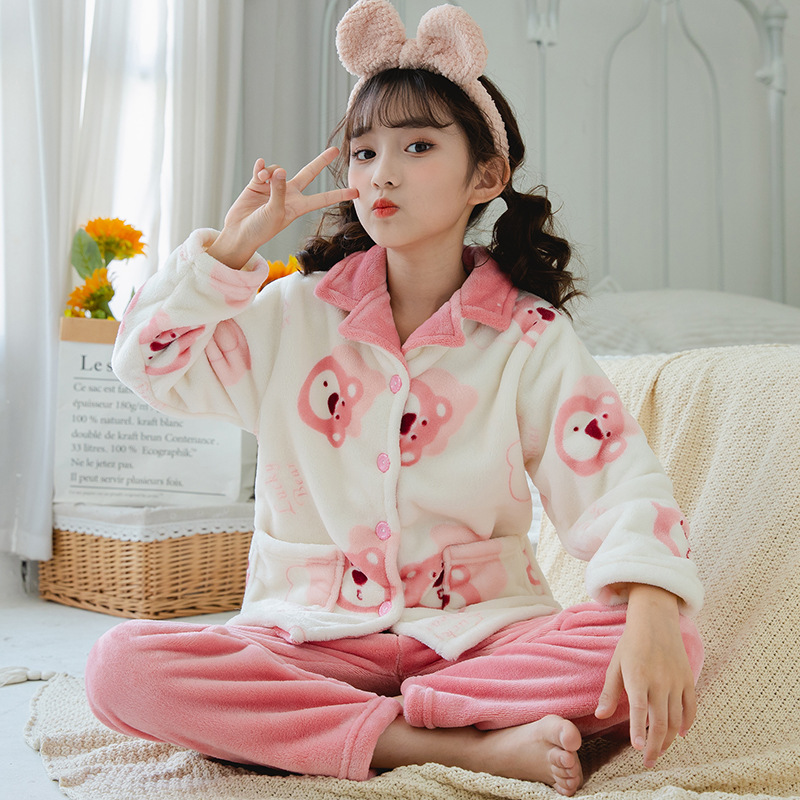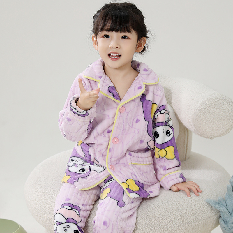 어린이 플란넬 잠옷 어린이 가정 옷 아기 산호 양털 잠옷 소년과 소녀 세트 도매스토어 가기
