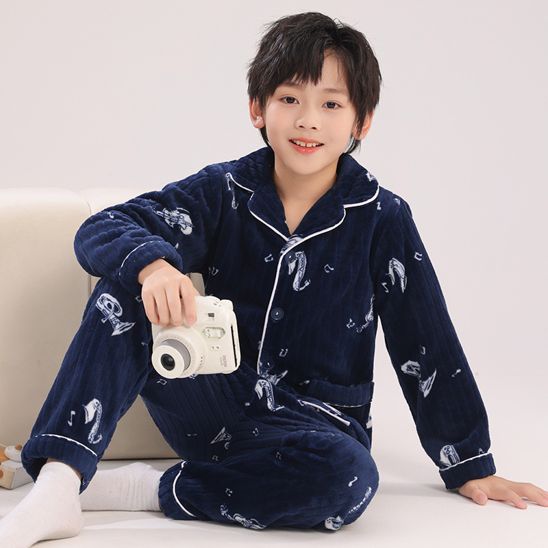어린이 플란넬 잠옷 어린이 가정 옷 아기 산호 양털 잠옷 소년과 소녀 세트 도매