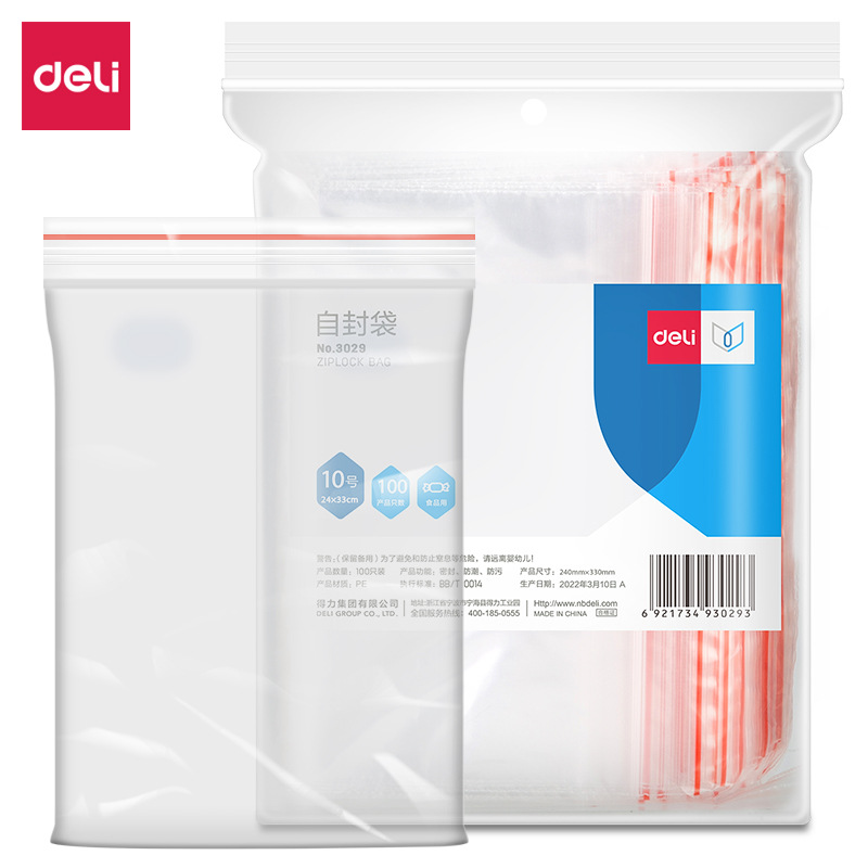 델리 3029 두꺼운 비닐 봉투 No. 10 (340*240) 자체 밀봉 백 100 밀봉 포켓
