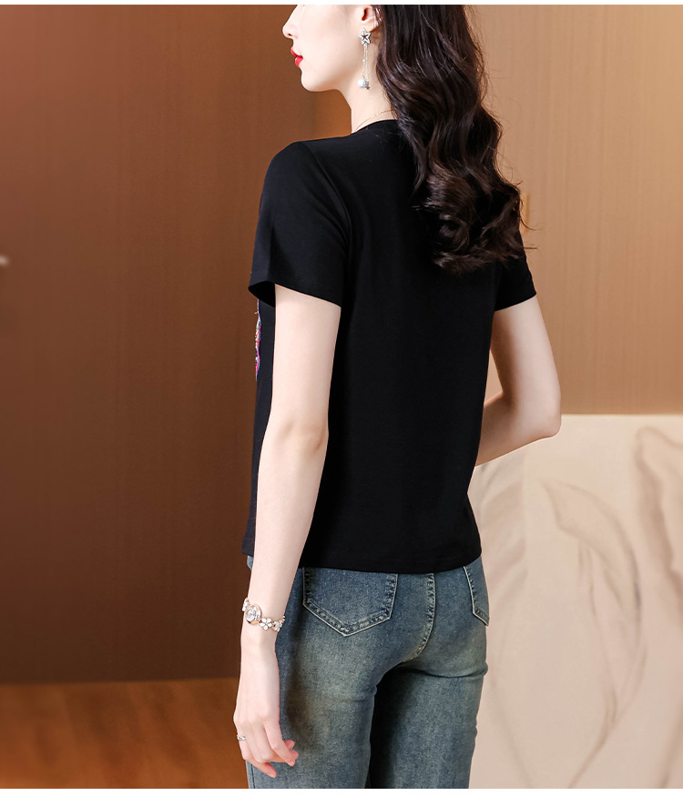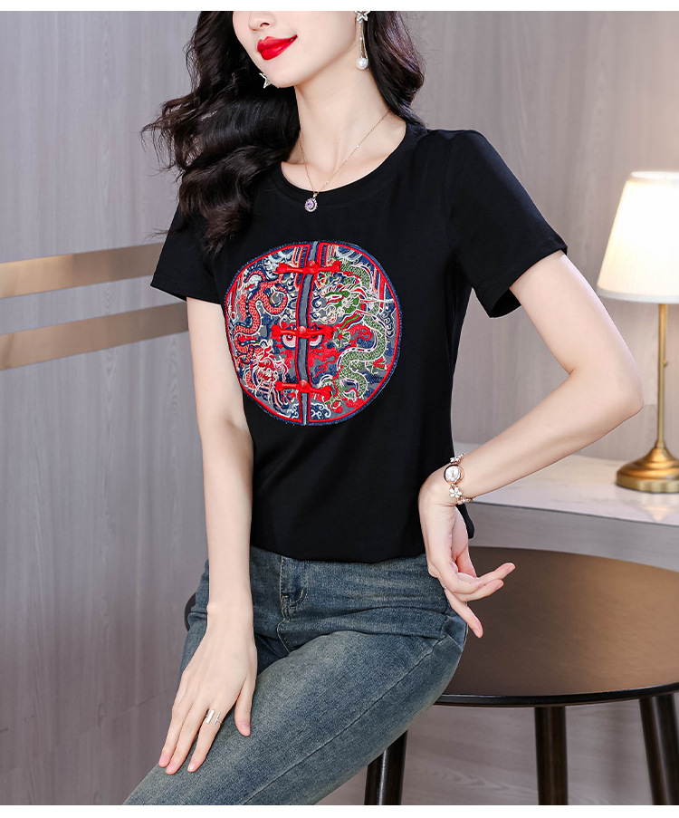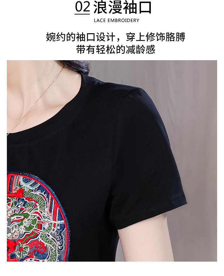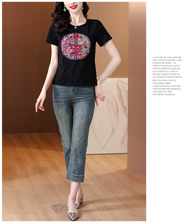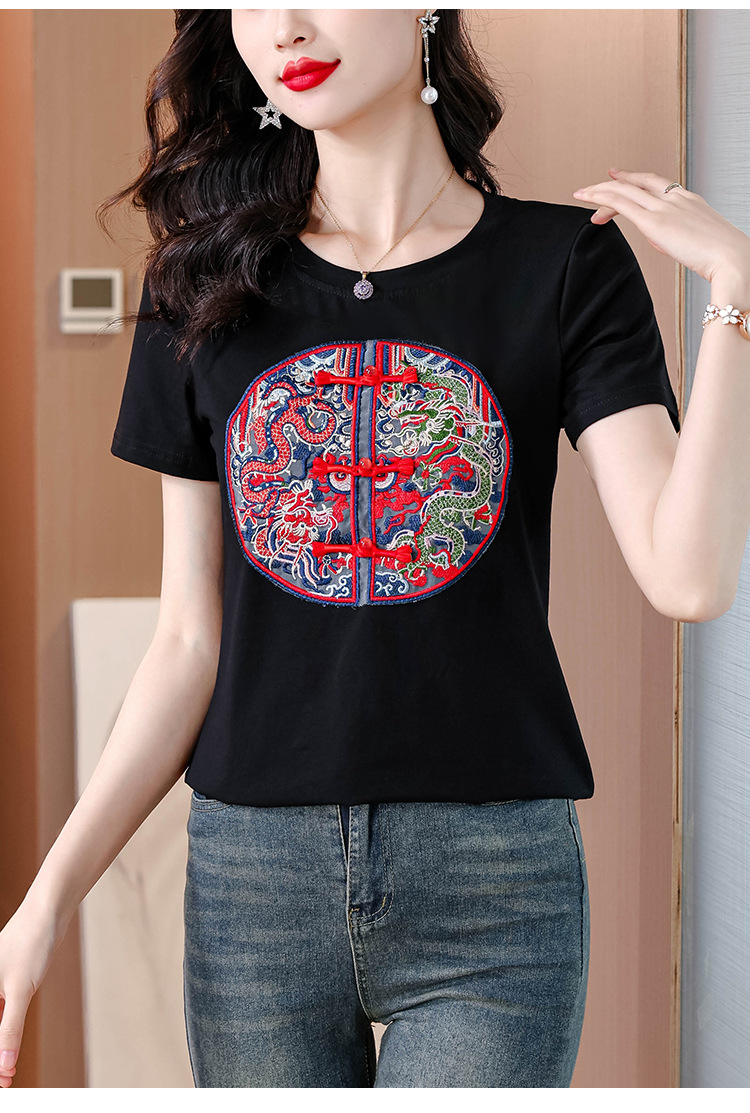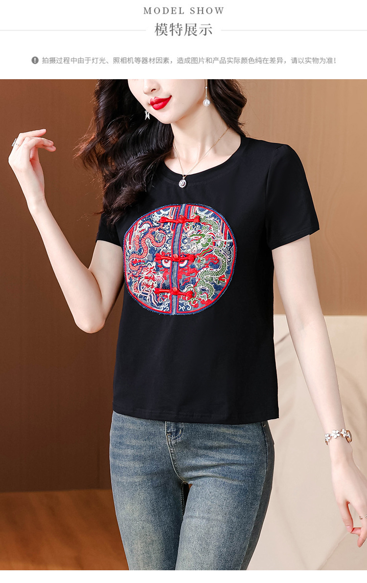 2026년 여름 신상 라운드넥 반팔 티셔츠 여성용 신중국풍 자수 다용도 정형 어깨탑스토어 가기