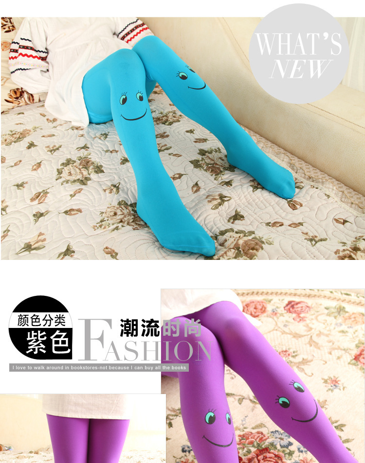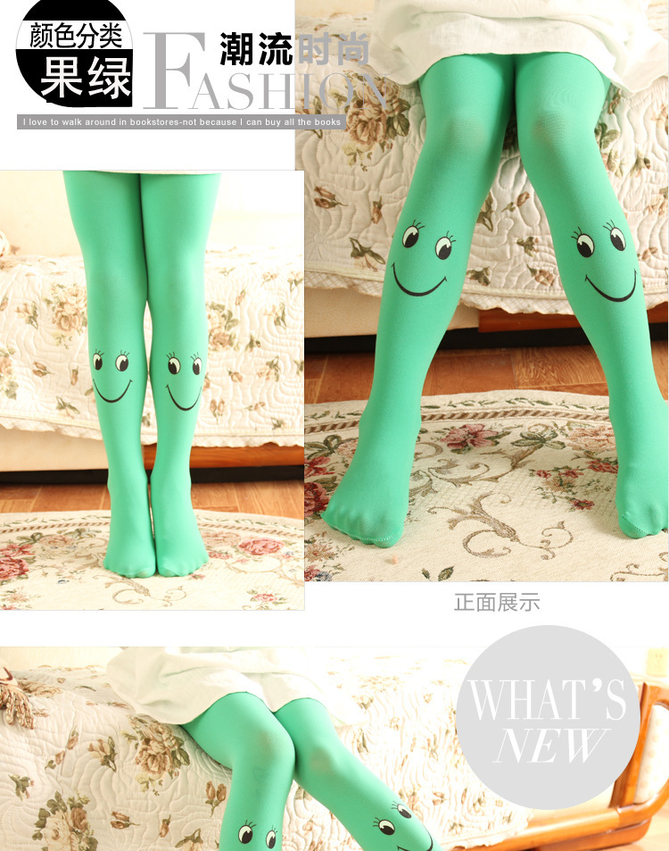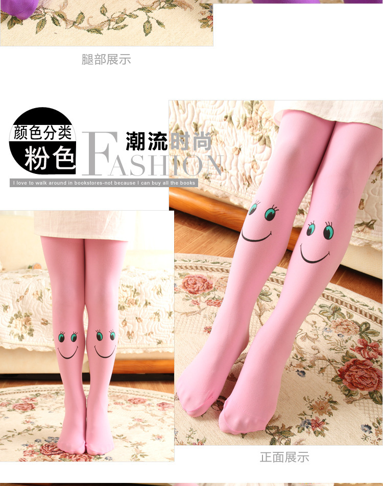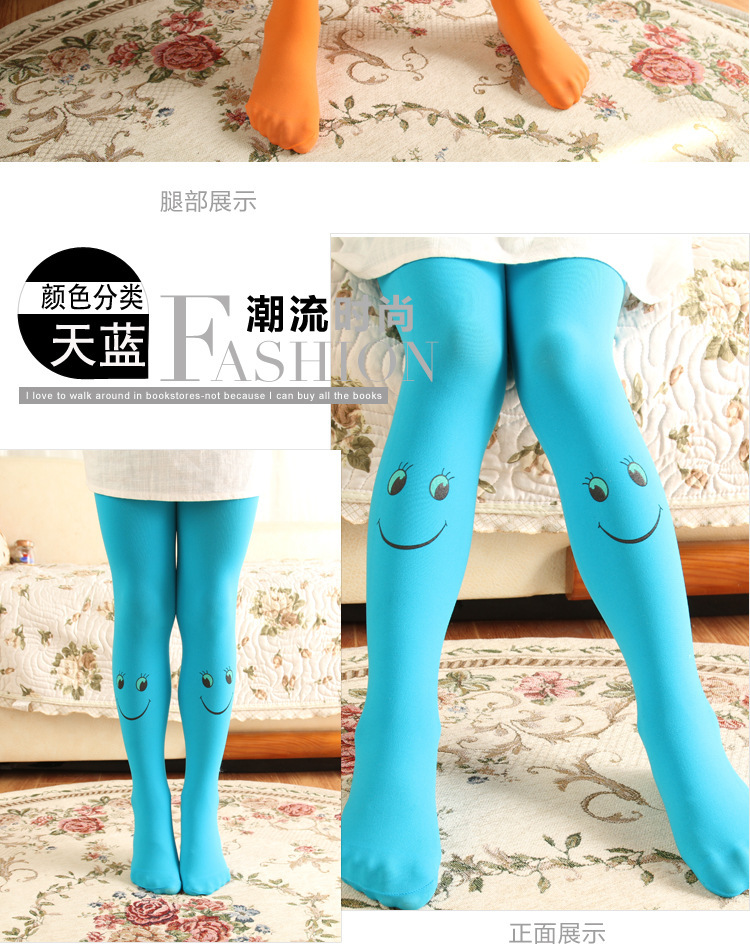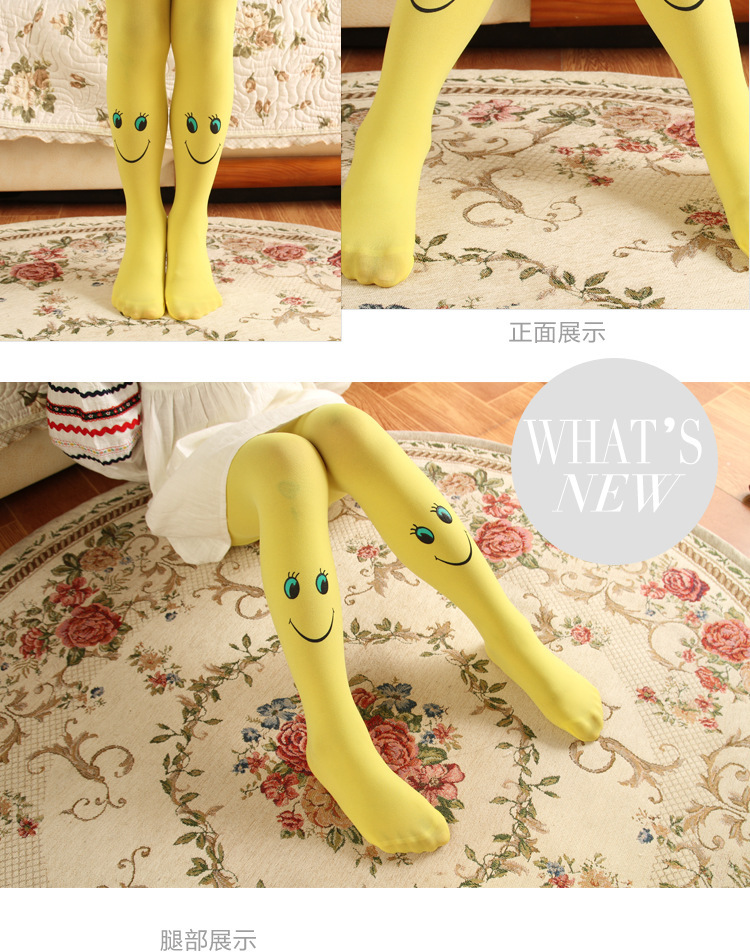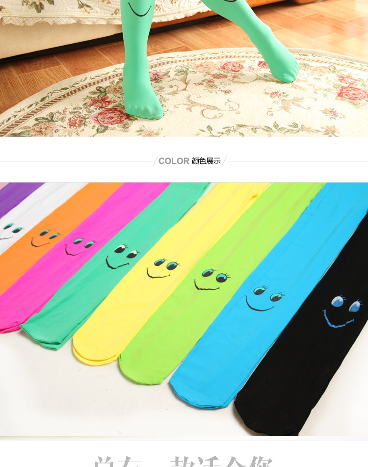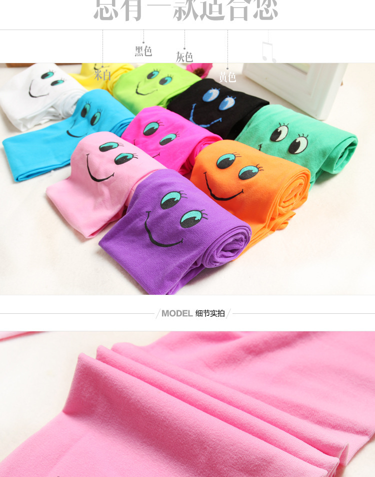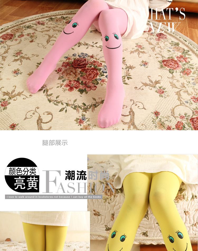 봄과 가을 어린이 팬티 스타킹 캔디 컬러 스마일 얼굴 소녀 벨벳 바닥 양말 댄스 양말 제조 업체 도매스토어 가기