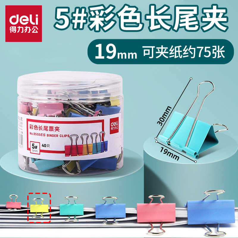 델리 8555es 컬러 롱 테일 클립 19mm 티켓 클립 메탈 더브테일 클립 티켓 클립 폴더 40 팩