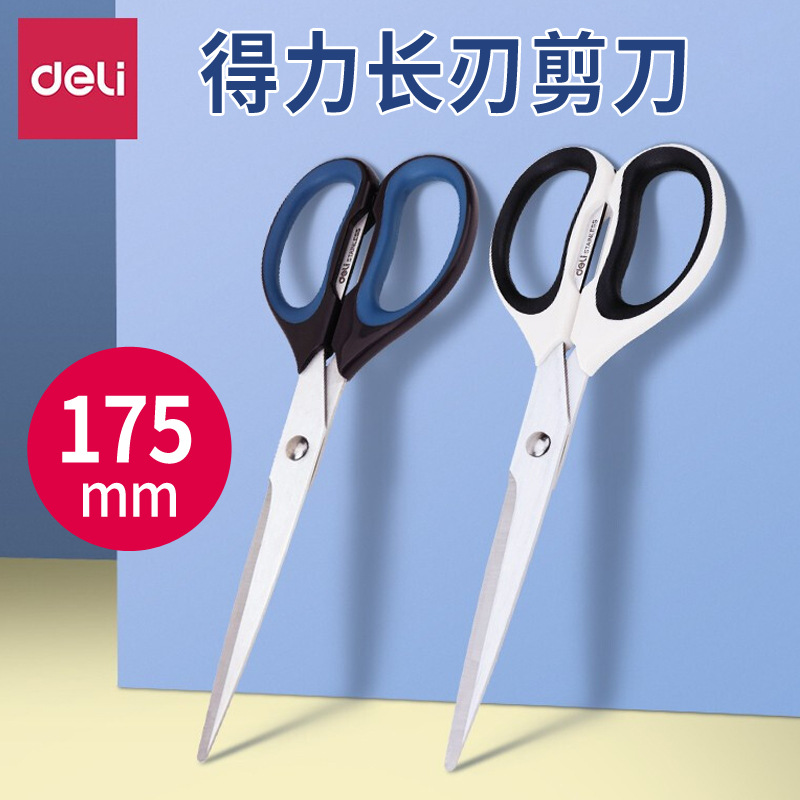 델리 6058 가위 스테인레스 스틸 사무실 가위 긴 날 종이 절단 가위 홈 편안한 손잡이 손으로 자른 가위스토어 가기