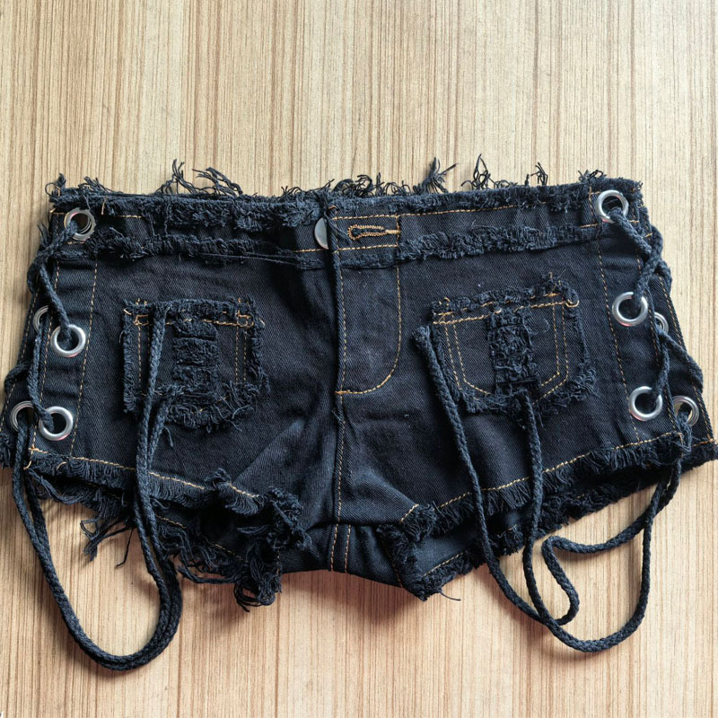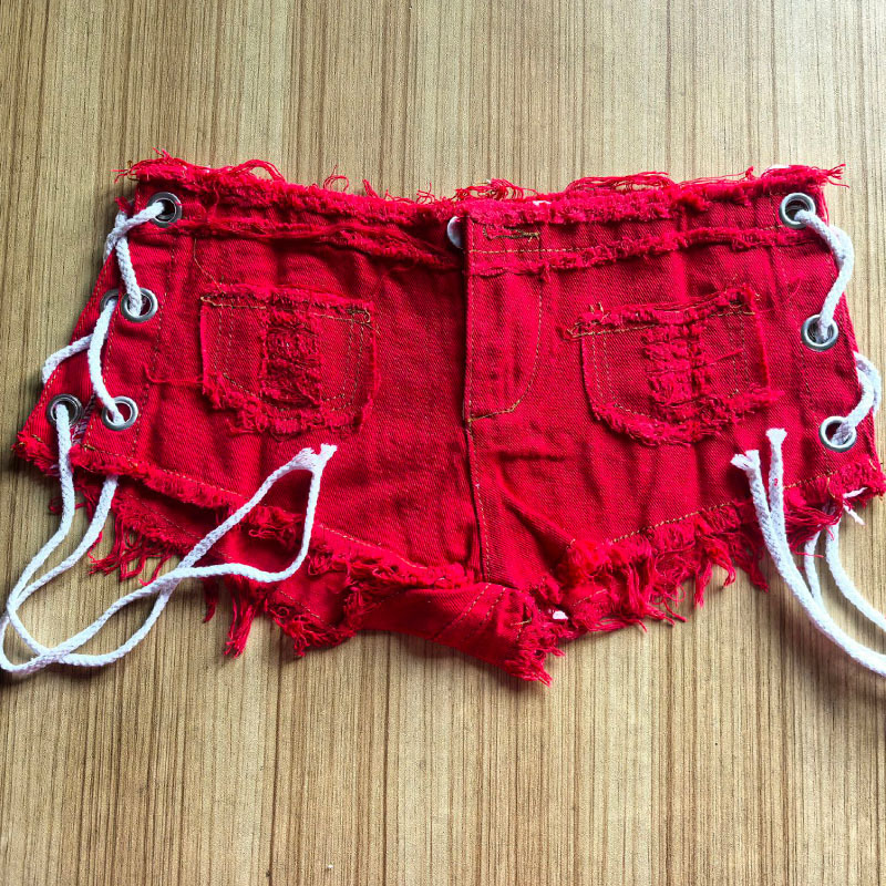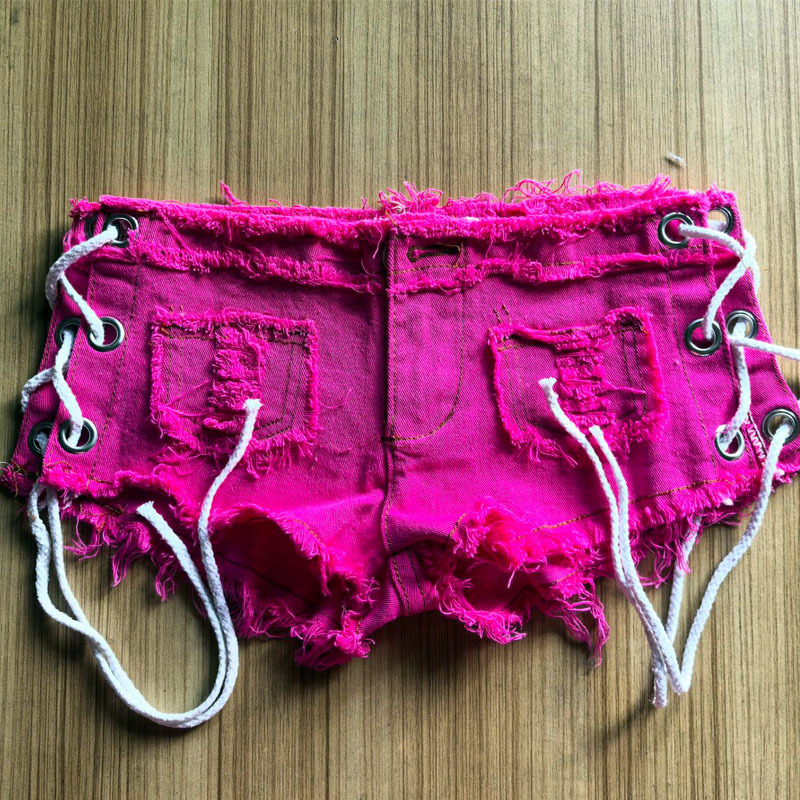 섹시한 사이드 슬릿 옥수수 스트랩 데님 반바지 나이트 클럽 폴 댄스 핫 팬츠 향수 컬러 워시 여성 바지스토어 가기