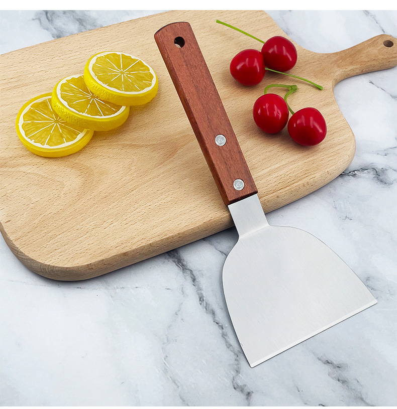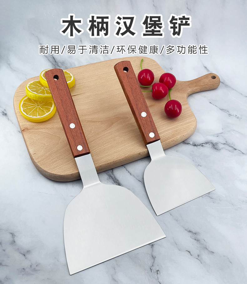 공장 직접 나무 손잡이 스테인레스 스틸 나무 손잡이 햄버거 삽 한국 요리 철판 키 대형 압력 삽 스테이크 튀김 삽스토어 가기